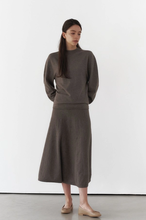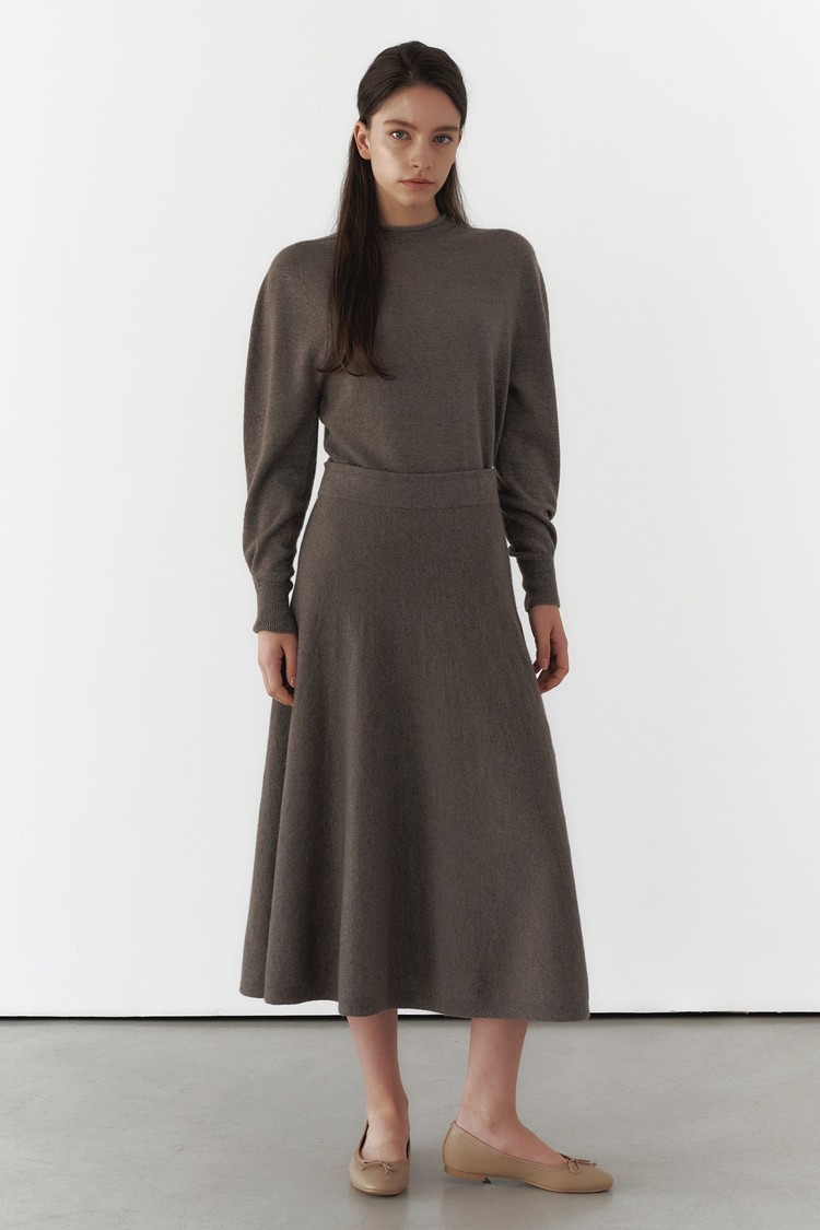 캐시미어100 플레어 스커트_브라운 멜란지