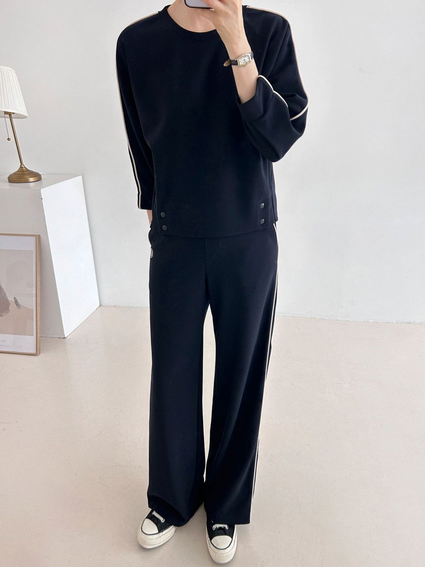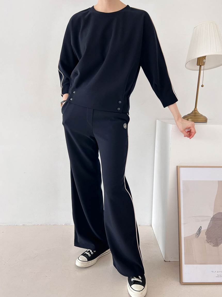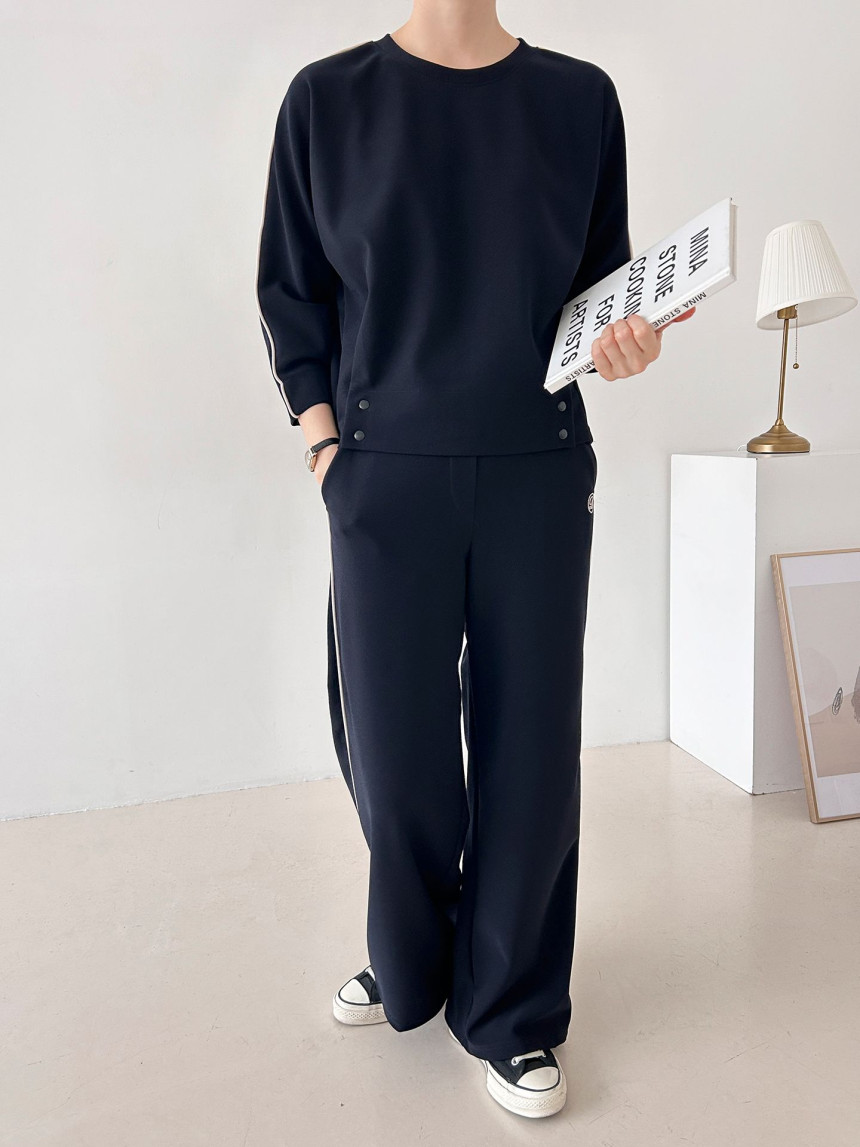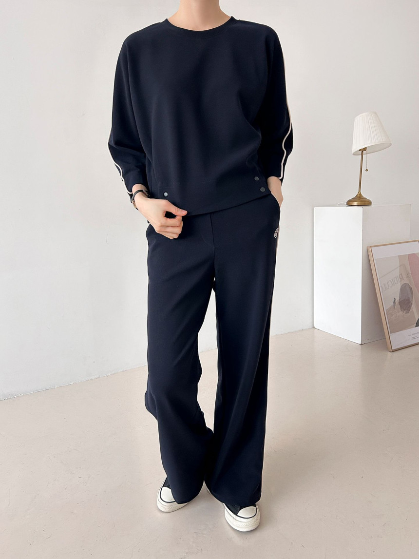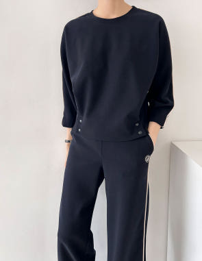 - 신축성이 좋은 아우터 블라우스 디자인의 티셔츠로 바지와 함께 세트로 착용시 도시적인 느낌과 트레이닝복의 편안함을 누리실 수 있는 아이템입니다.