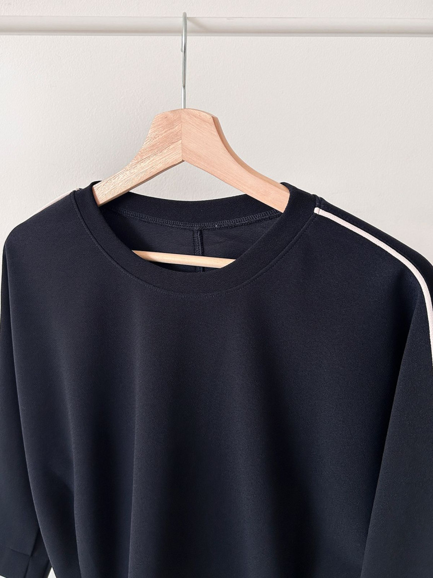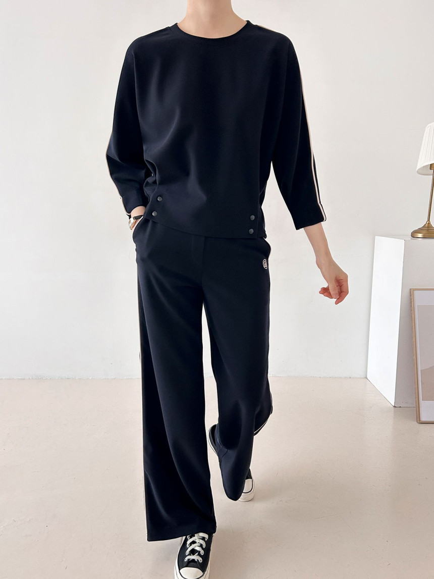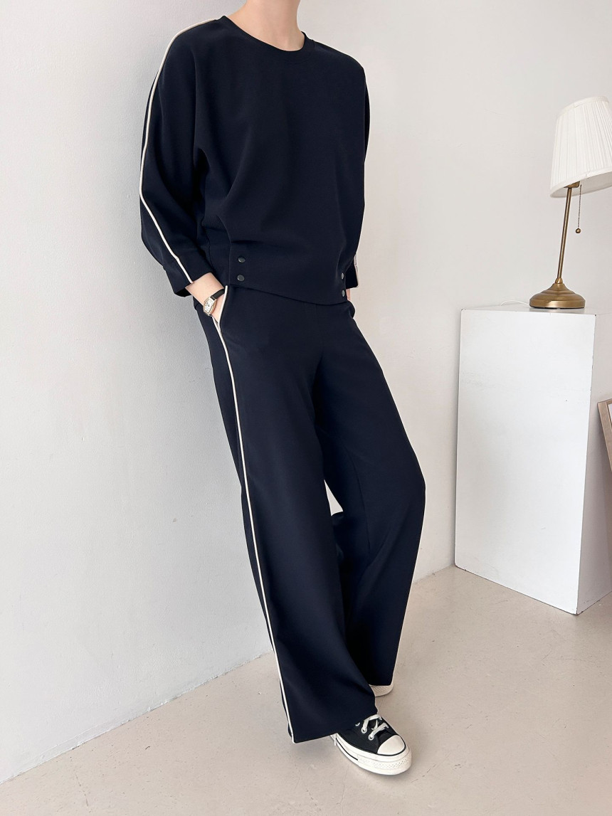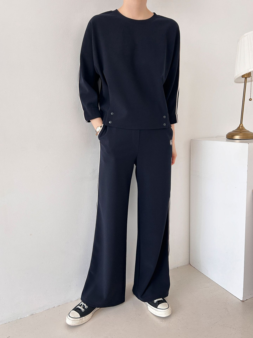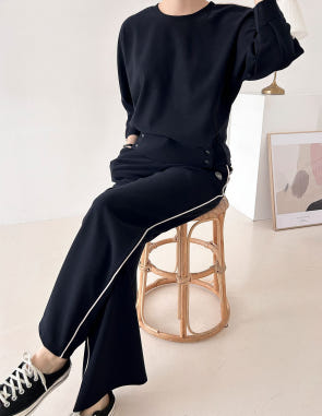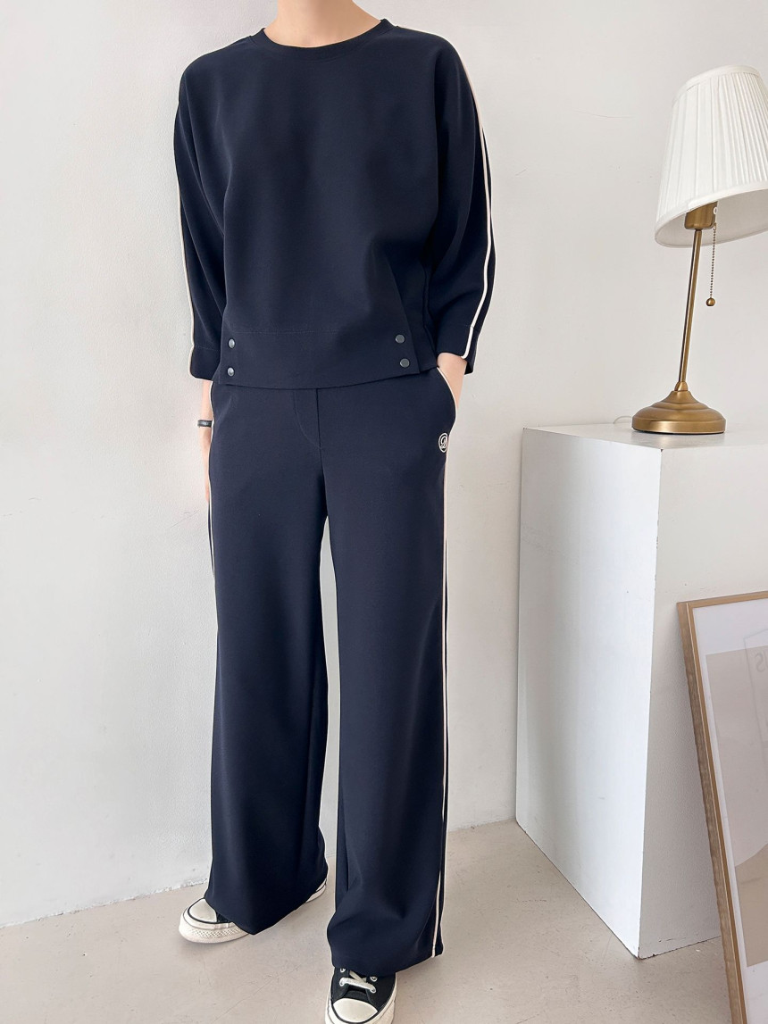 - 신축성이 좋은 아우터 블라우스 디자인의 티셔츠로 바지와 함께 세트로 착용시 도시적인 느낌과 트레이닝복의 편안함을 누리실 수 있는 아이템입니다.