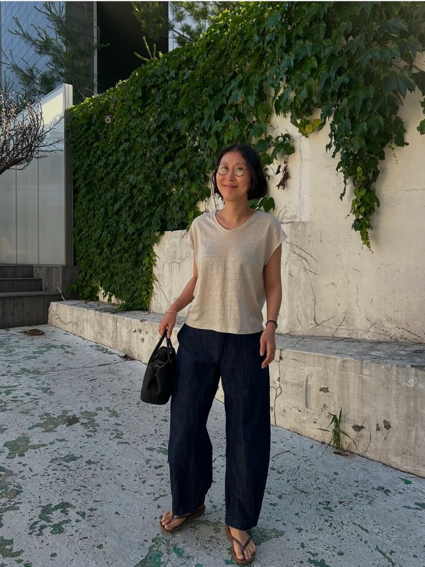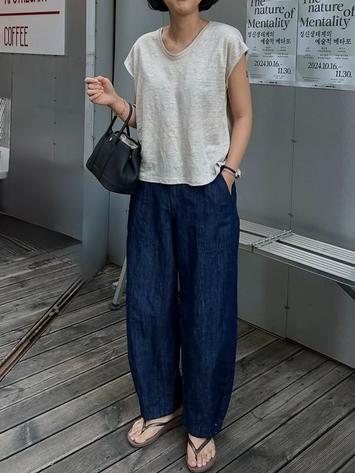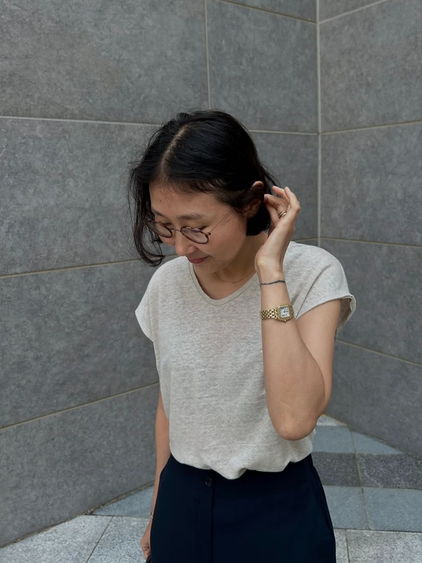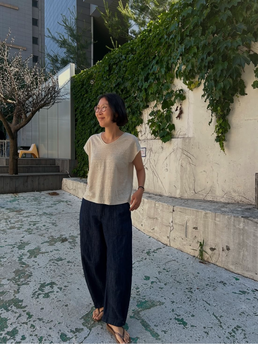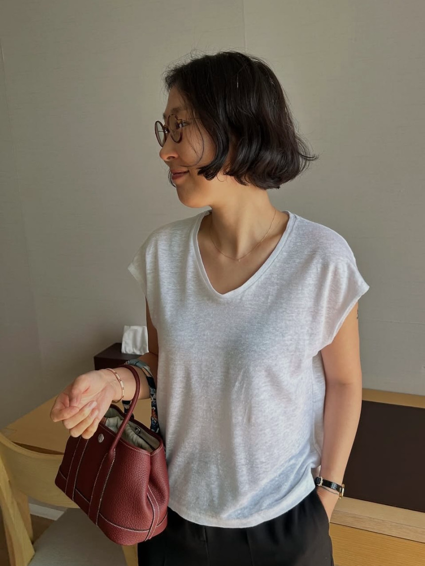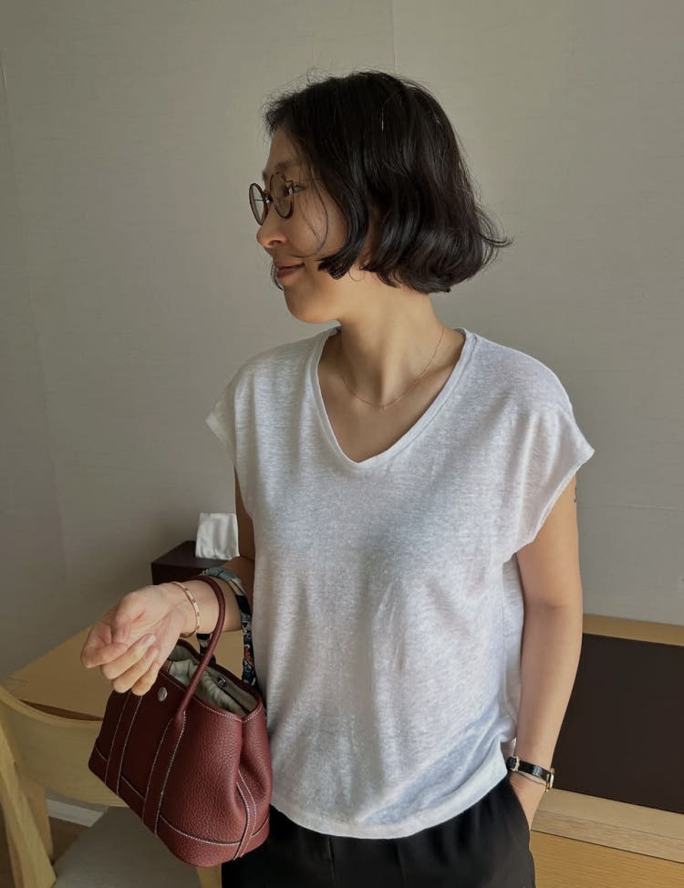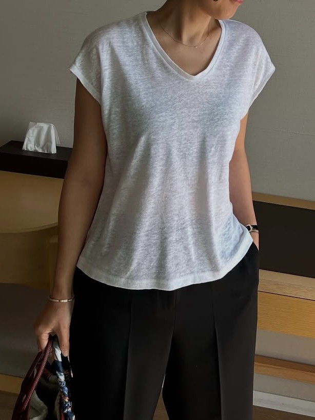- 어깨를 살짝 덮는 린넨 100%의 시원한 브이넥 티셔츠입니다.