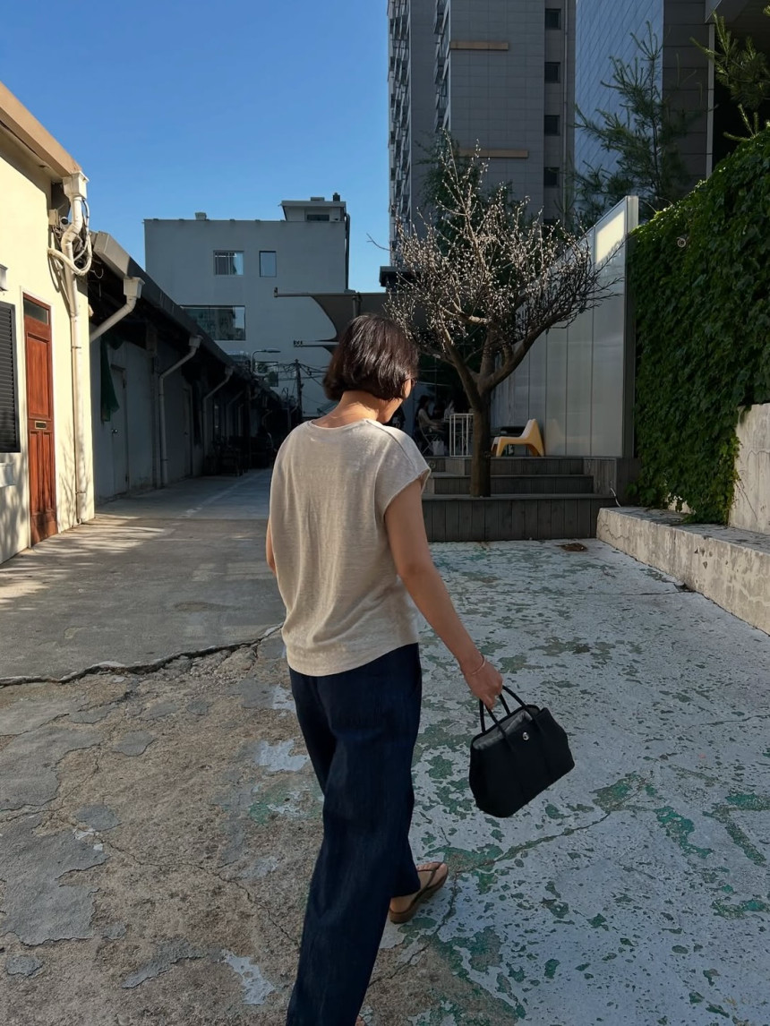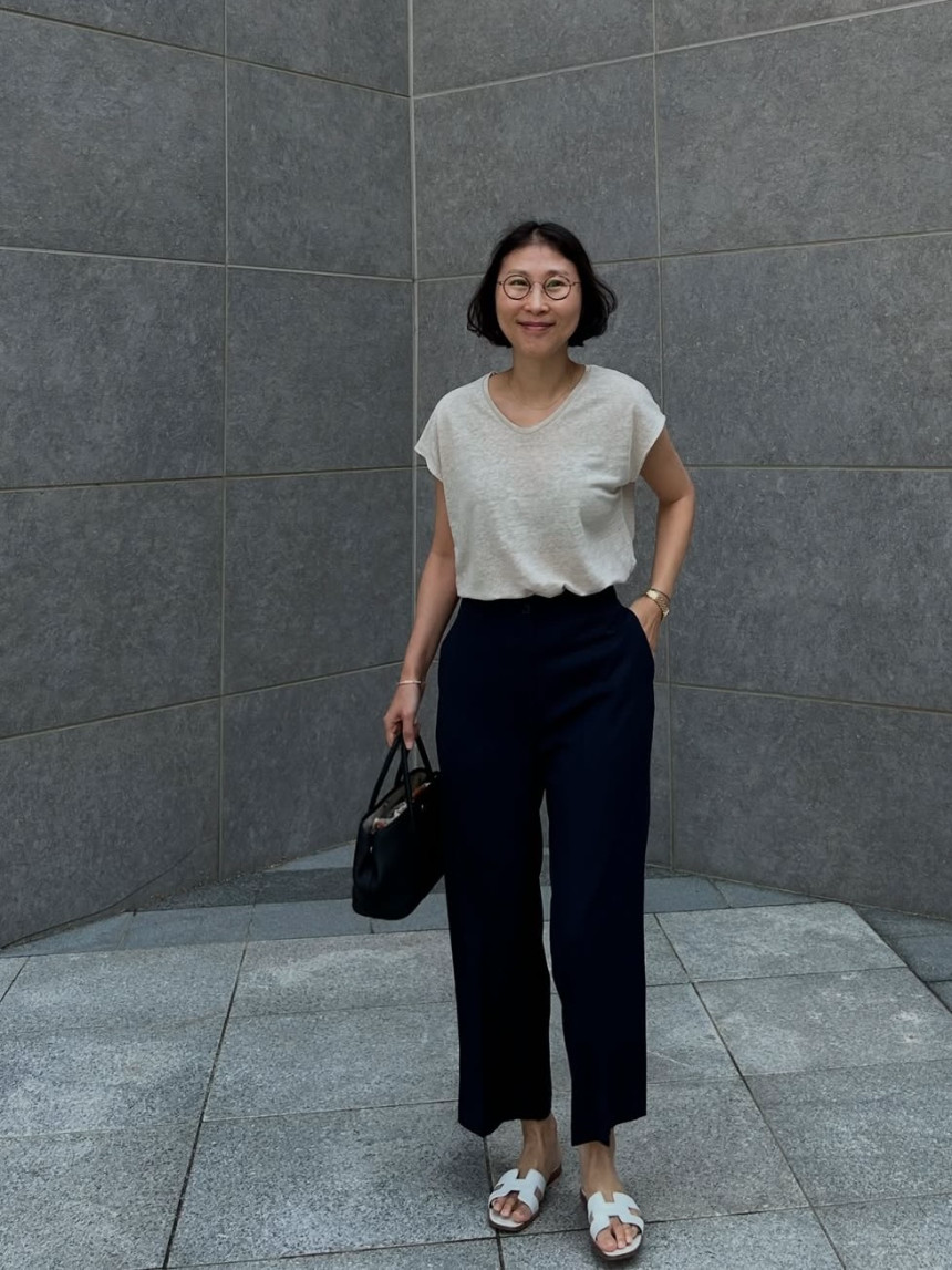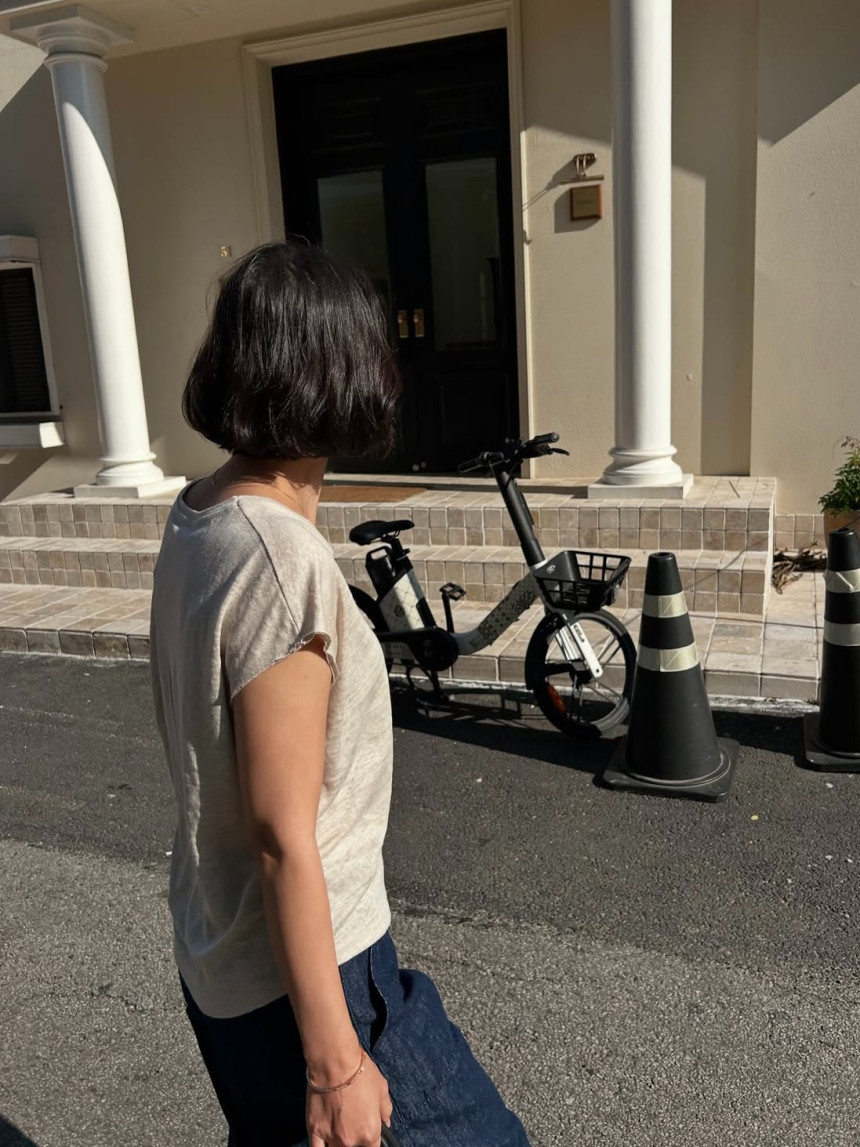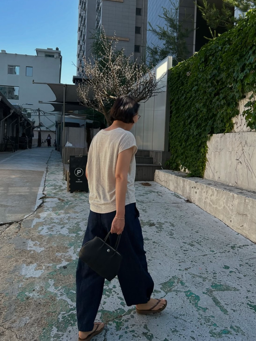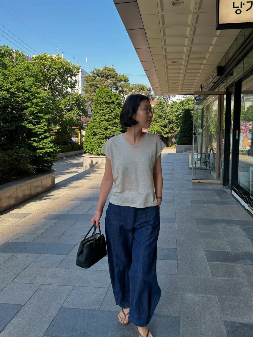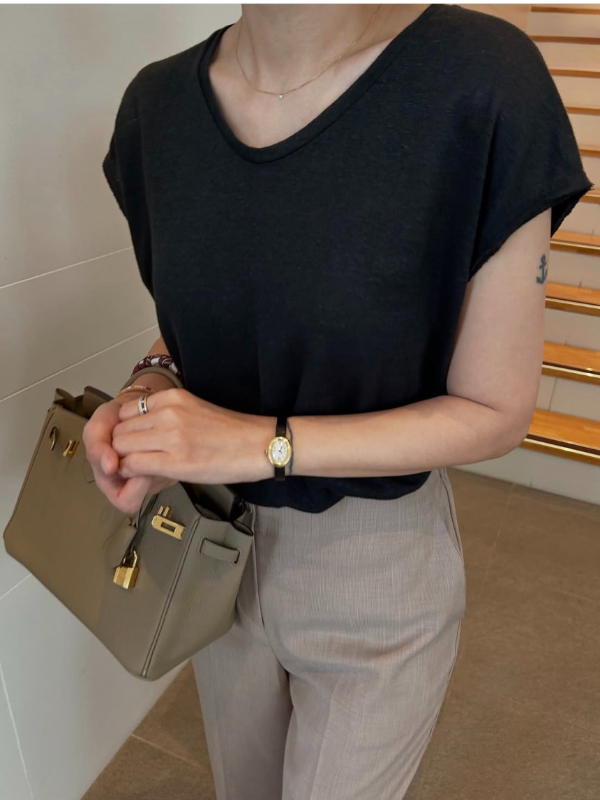 - 어깨를 살짝 덮는 린넨 100%의 시원한 브이넥 티셔츠입니다.