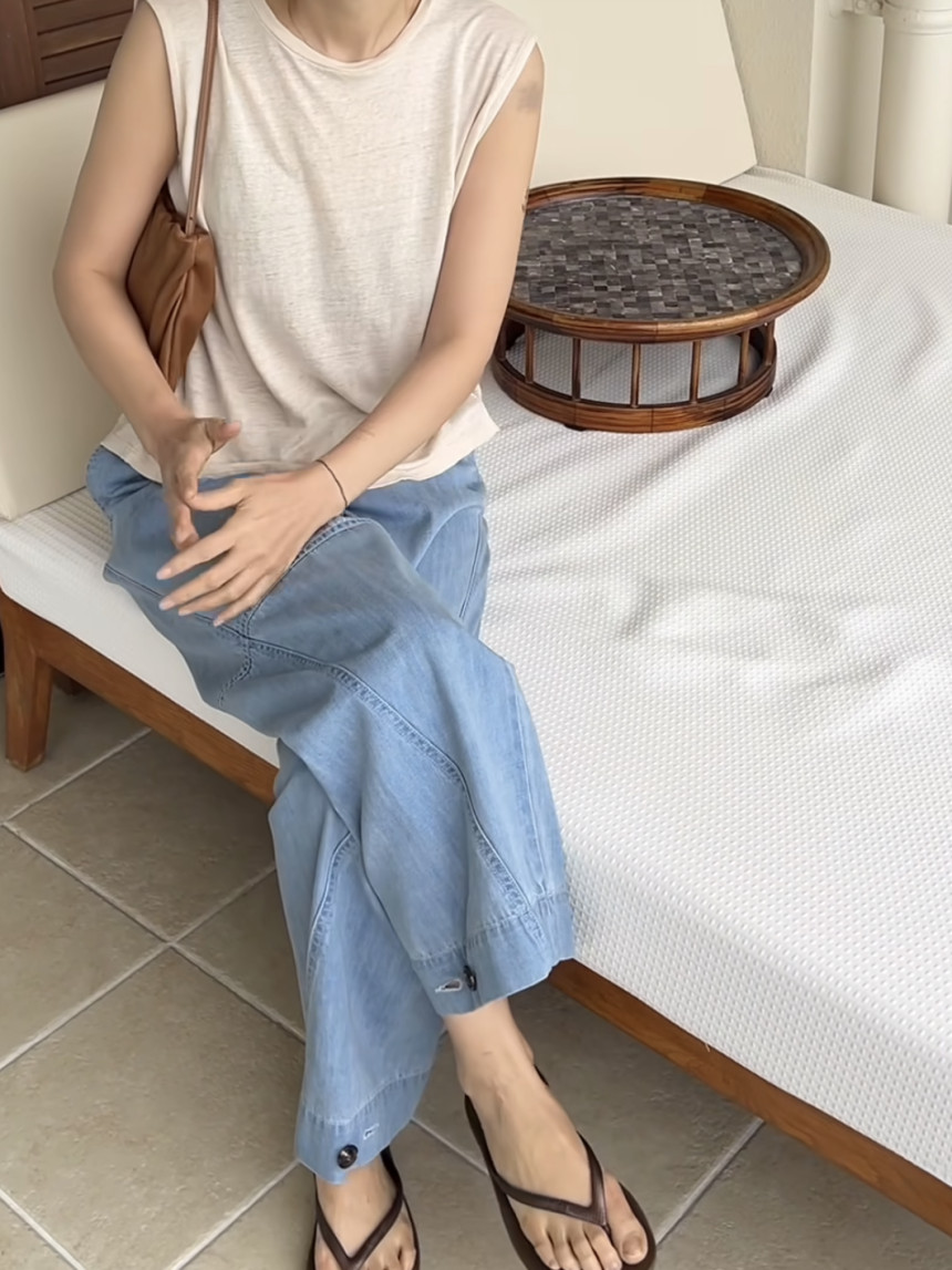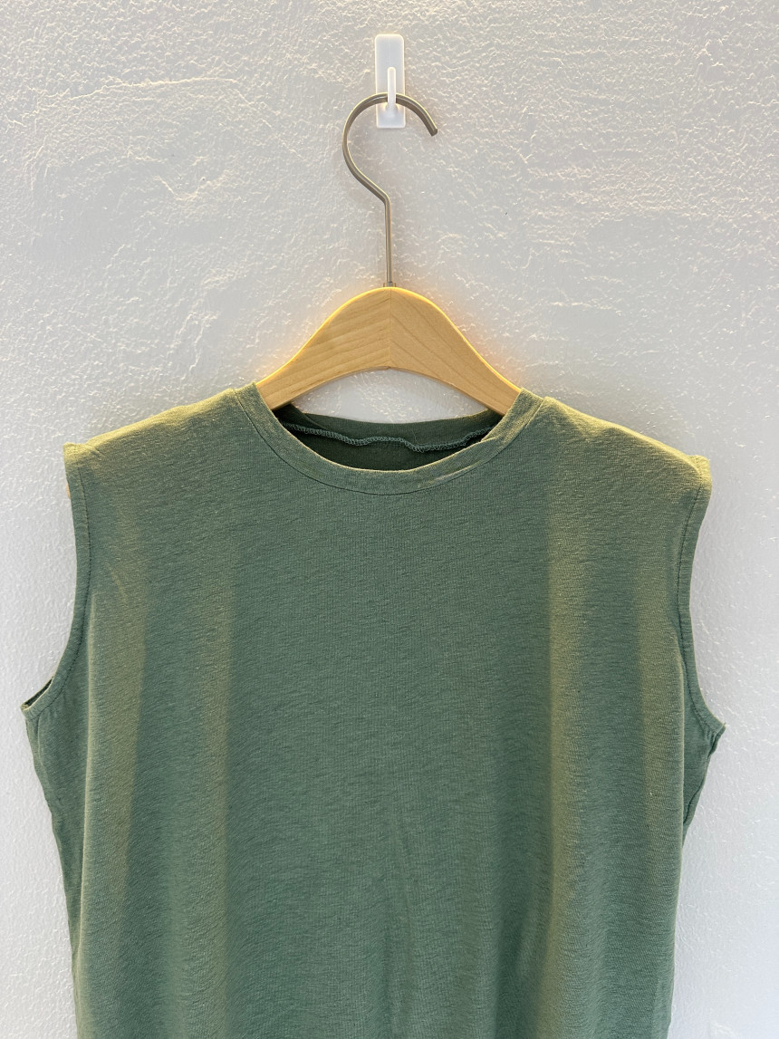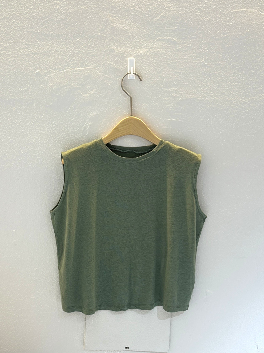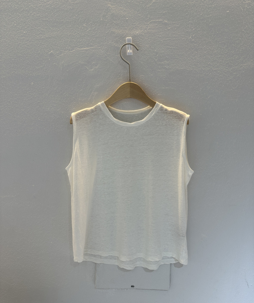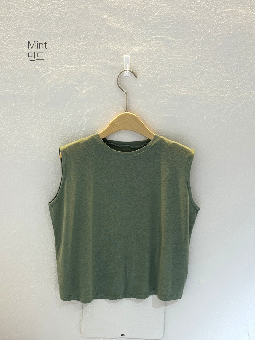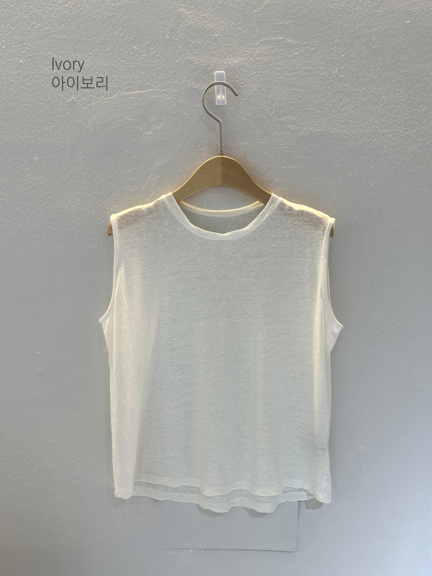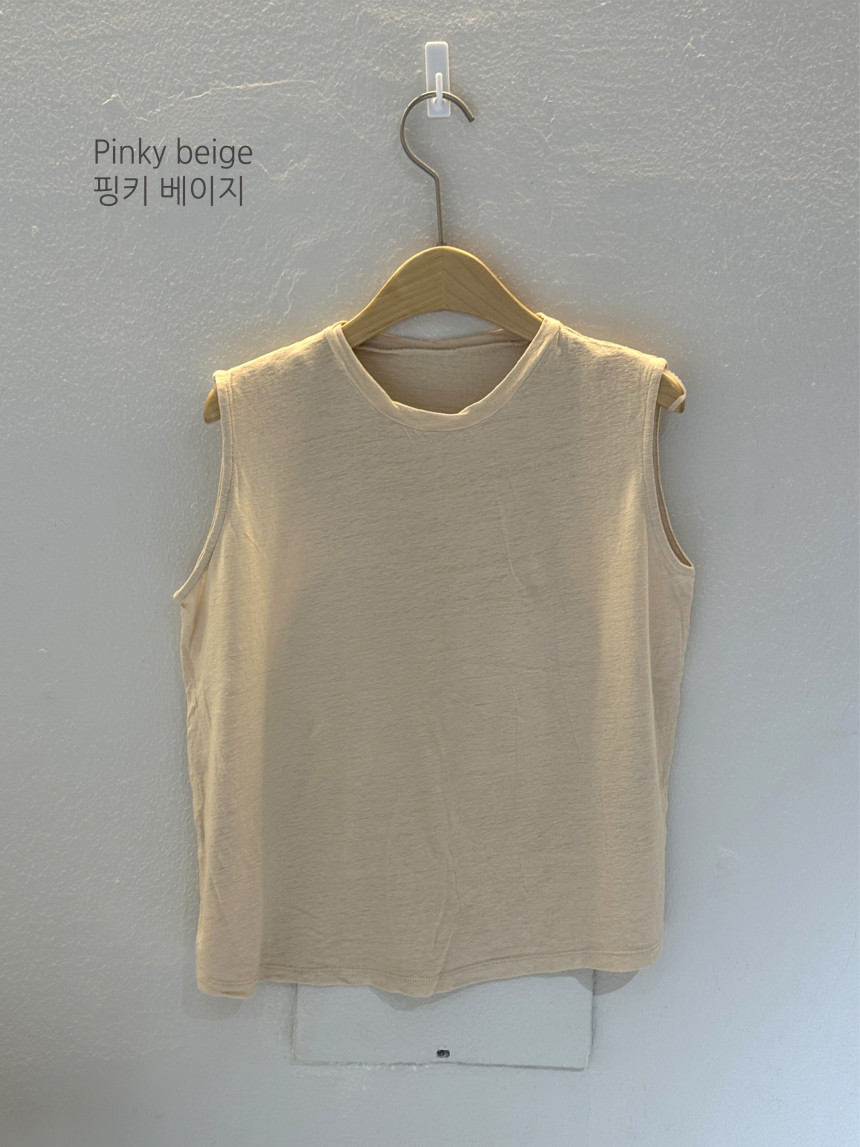 - 린넨 혼방의 워싱된 소재를 사용하여 소프트한 터치가 돋보이는 민소매 티셔츠 입니다.