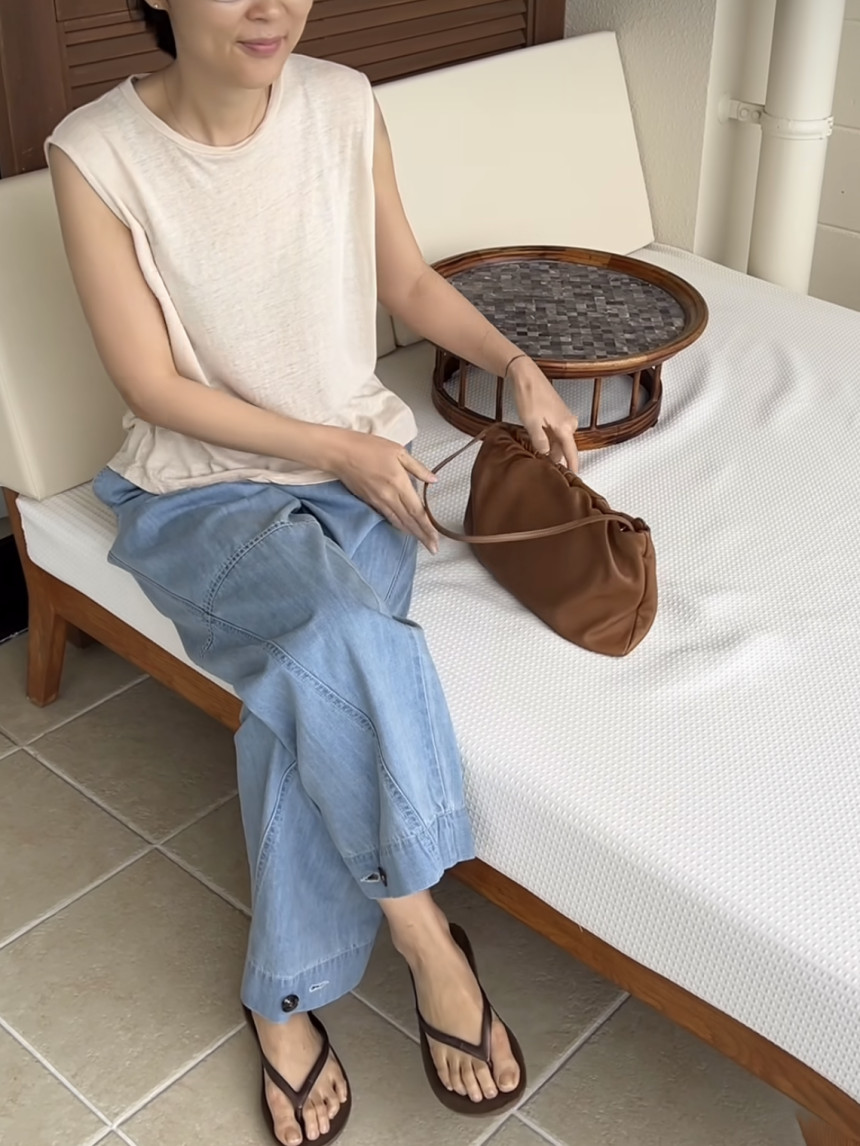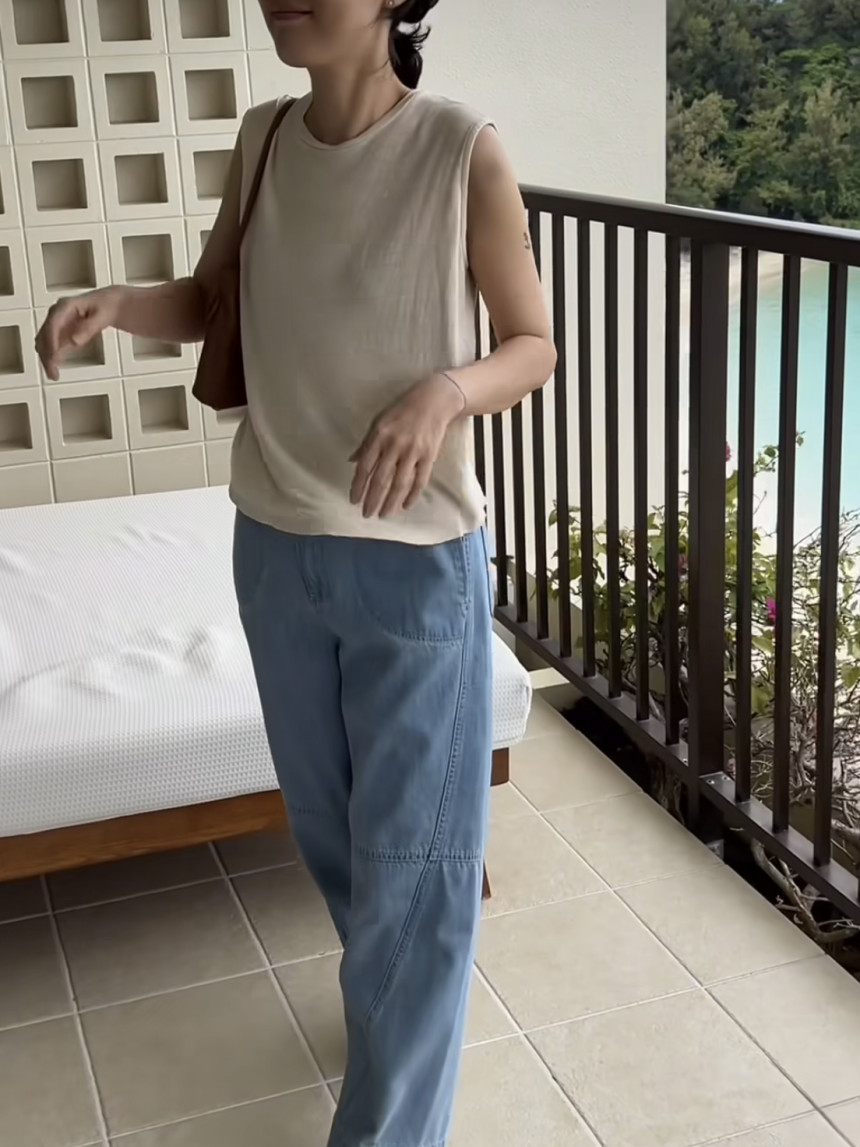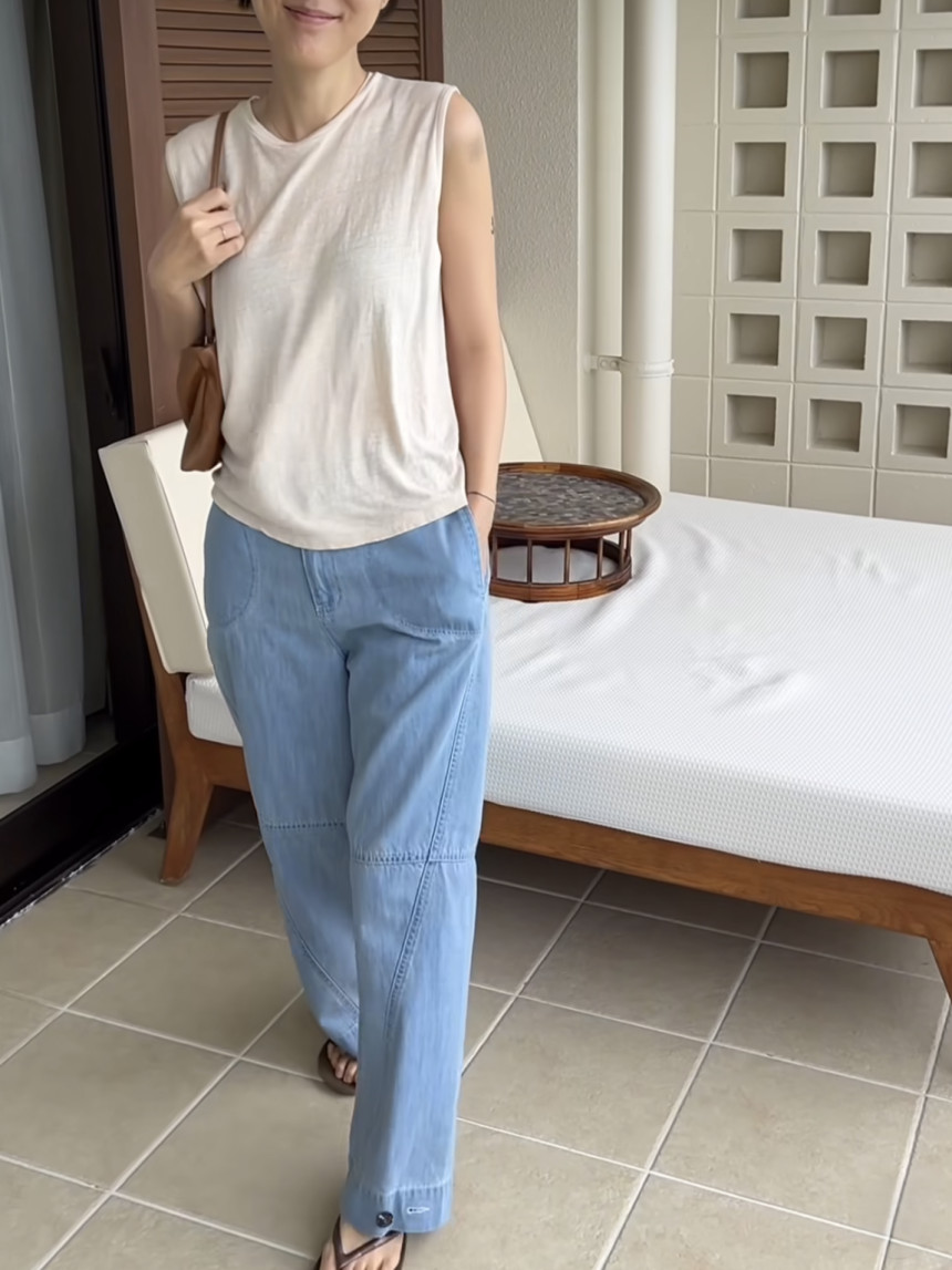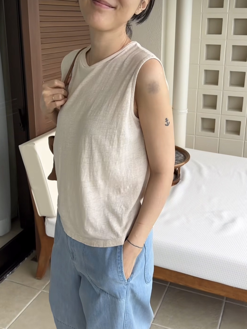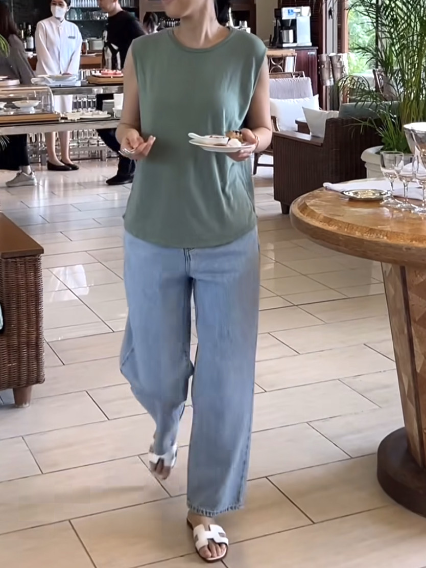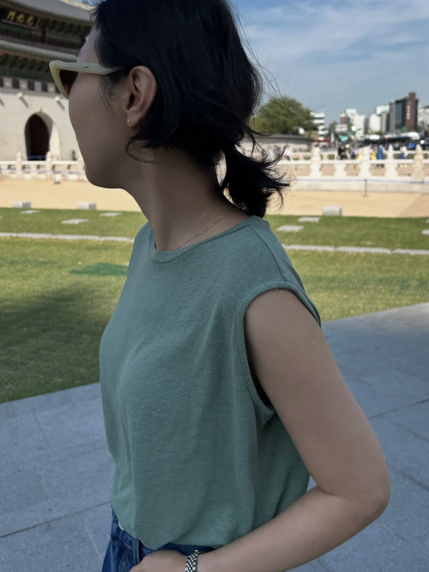 - 린넨 혼방의 워싱된 소재를 사용하여 소프트한 터치가 돋보이는 민소매 티셔츠 입니다.