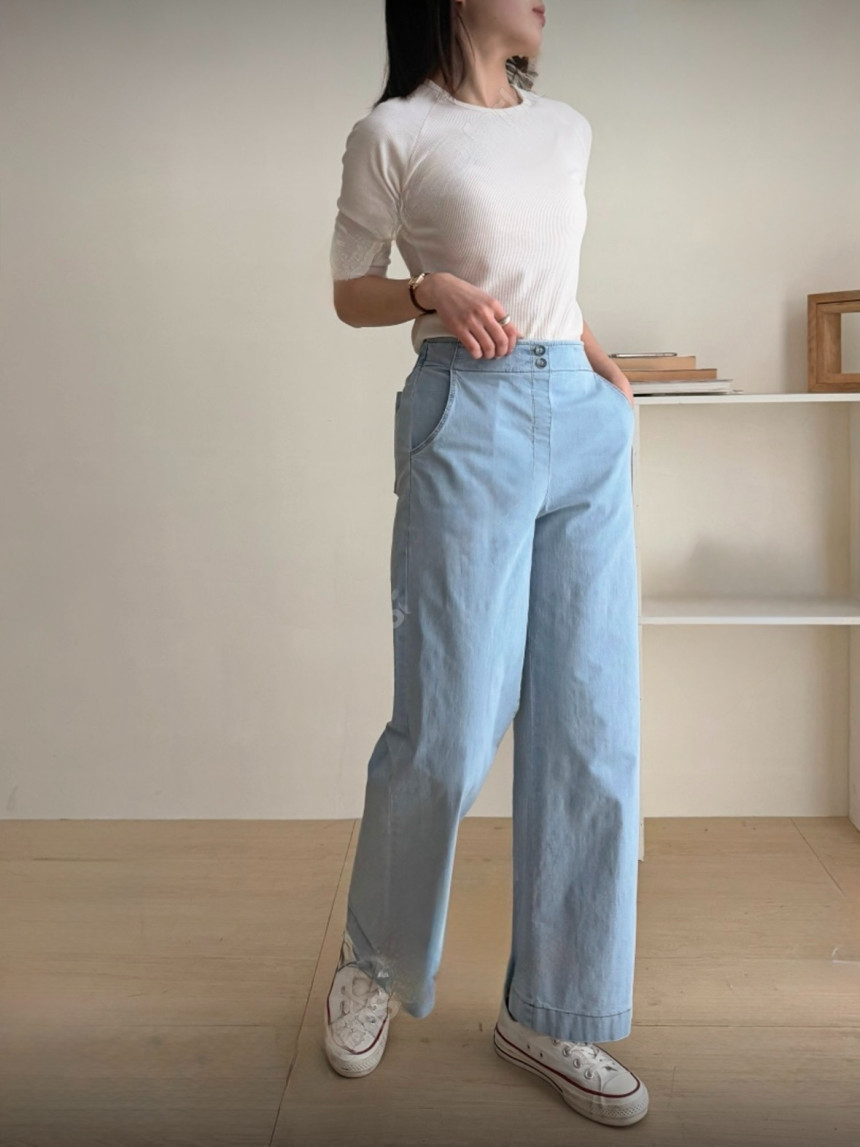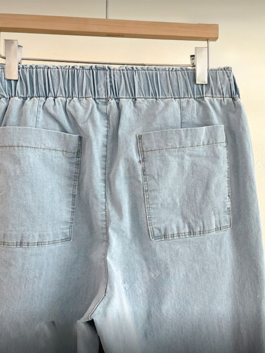 - 뒷밴딩으로 착용하기 편리하며 두껍지 않아 여름철 데님으로 적당합니다.