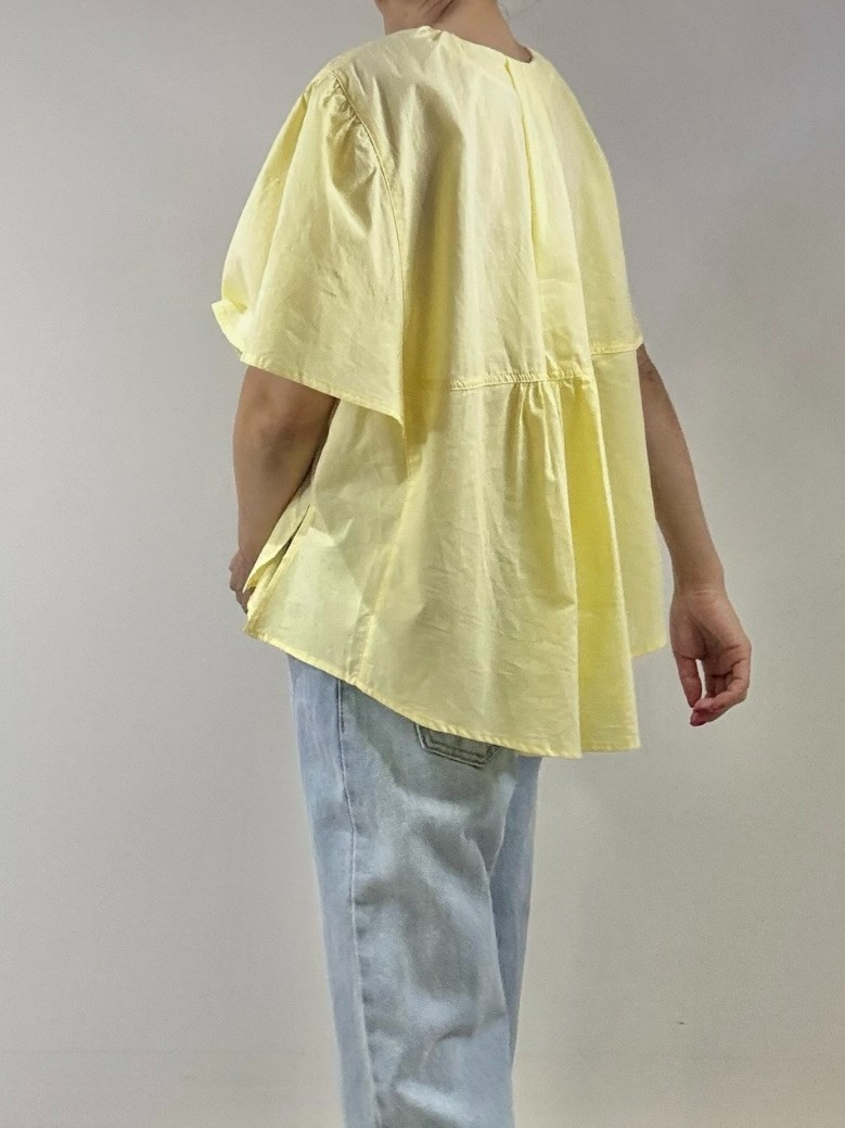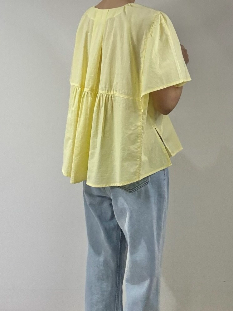 넥라인은 밋밋하지 않게 은은한 포인트를 준 면 셔링 블라우스입니다.