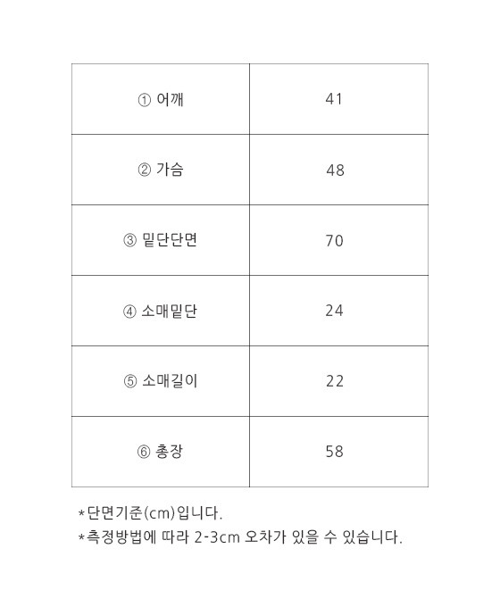 개인의 신장 및 체형, 디자인에 따라 차이가 있을 수 있으며, 실측사이즈를 함께 참고하시면 보다 정확한 선택이 가능합니다.