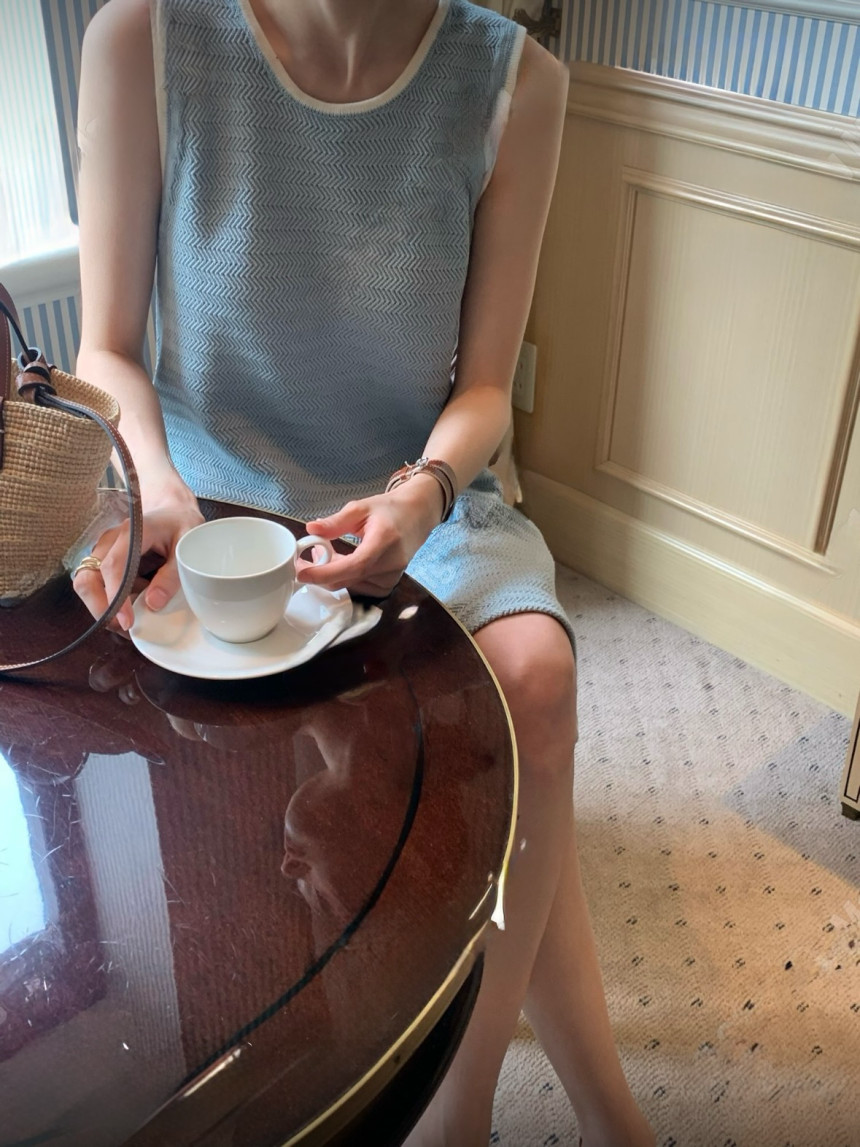 - 코튼100 소재의 니트 민소매 원피스입니다.