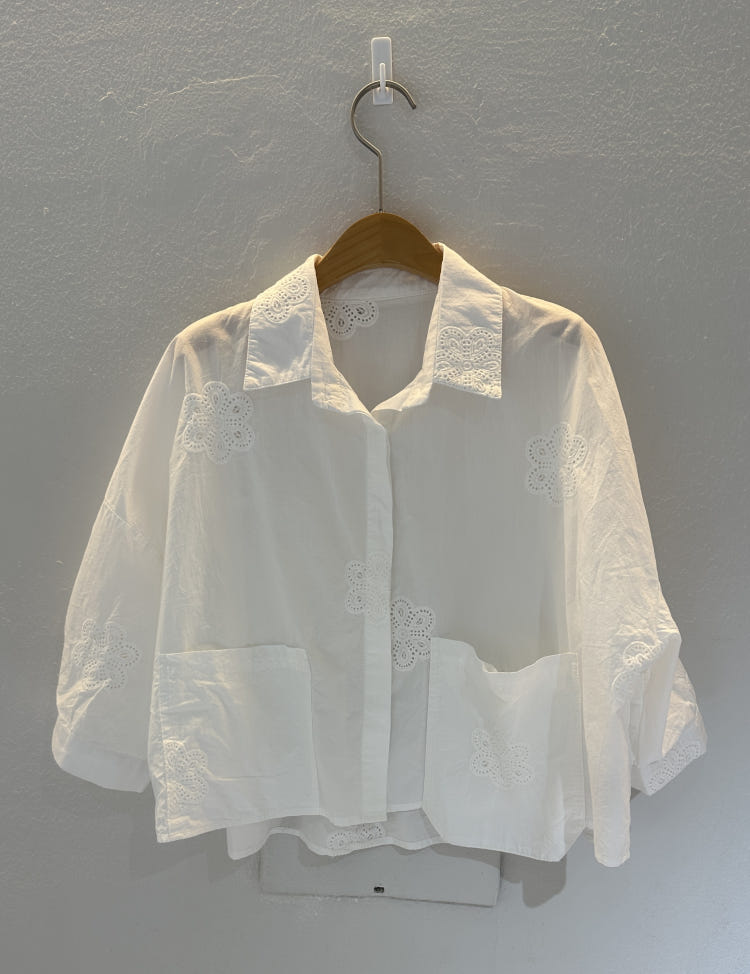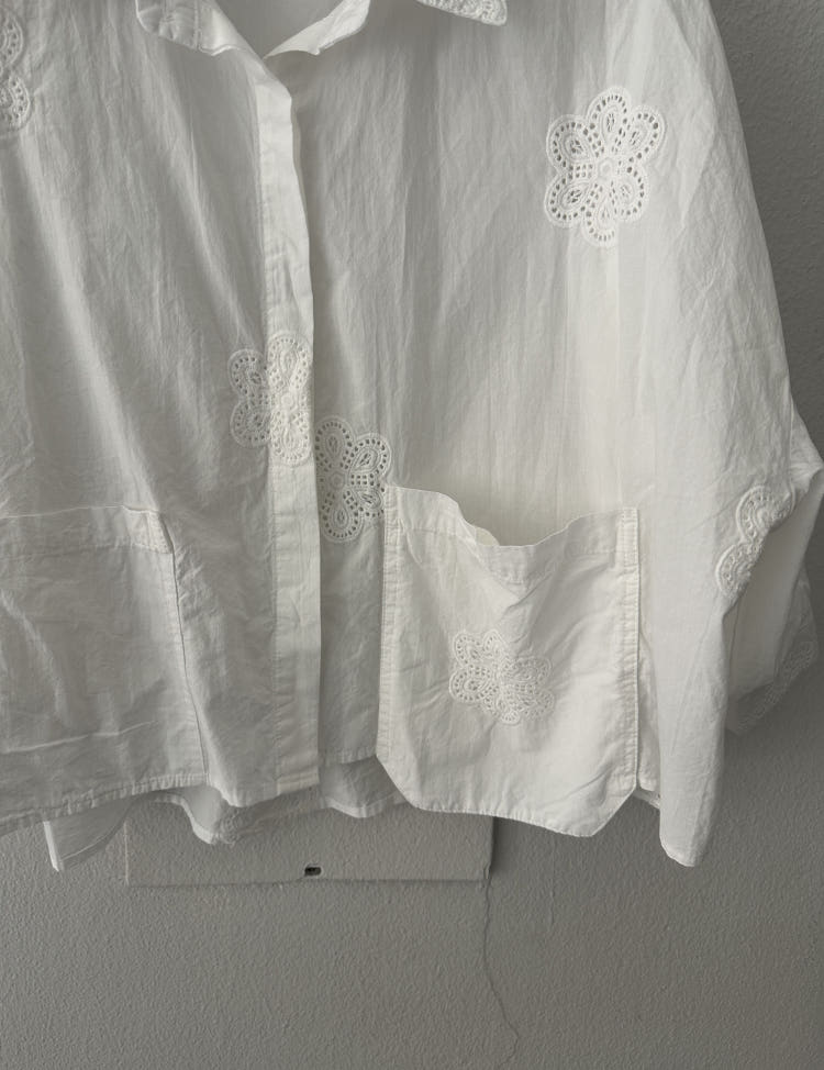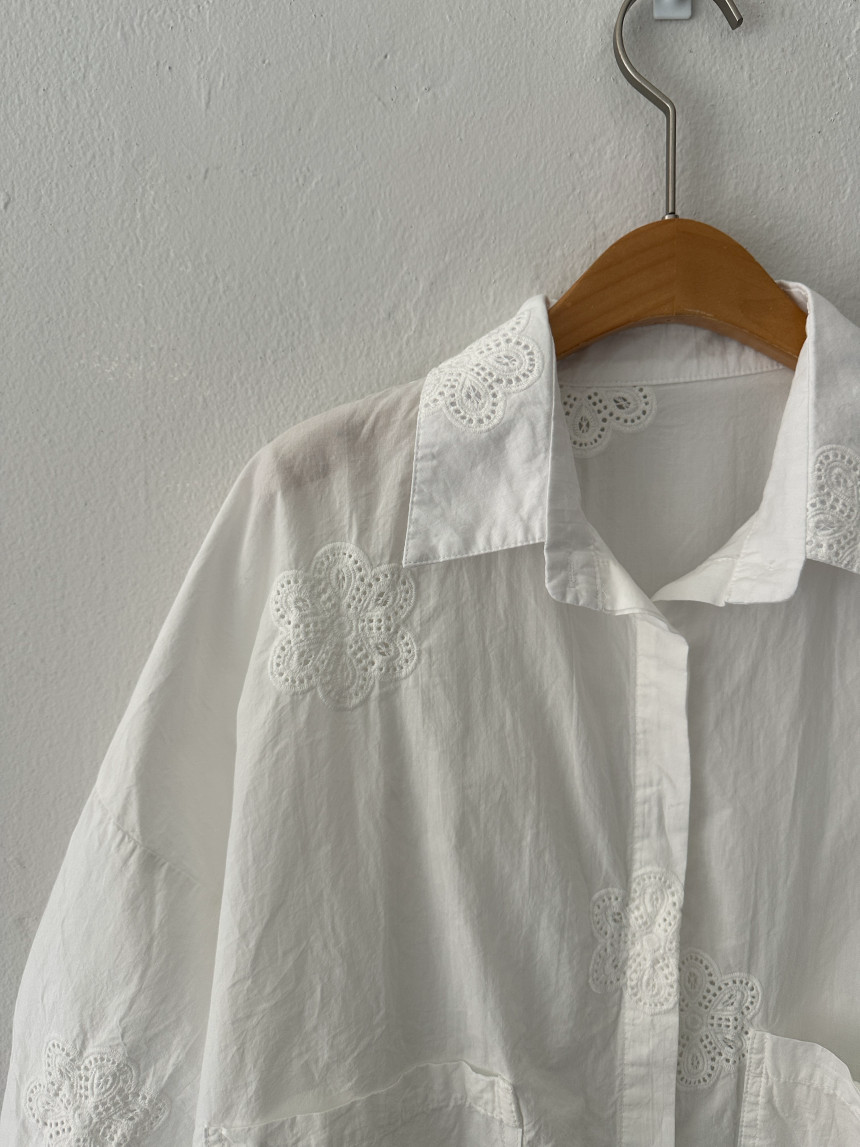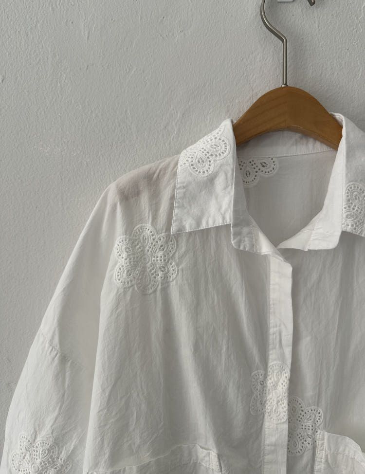 - 오픈해서 셔켓 스타일로 착용해도 좋은 , 히든 단추의 오픈형 스타일의 블라우스 입니다.