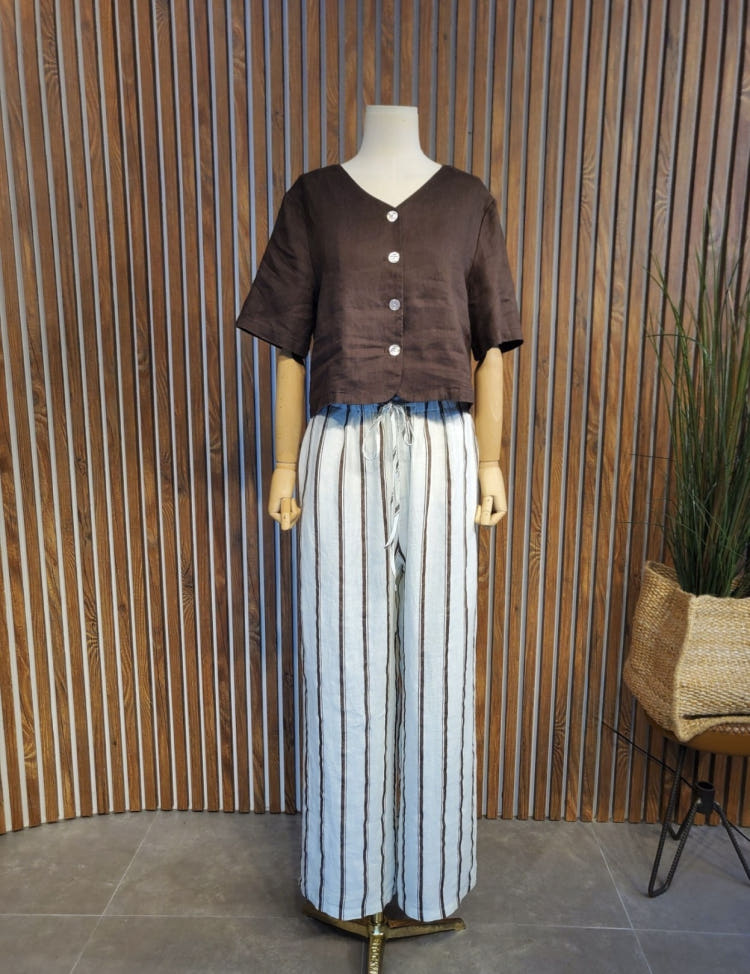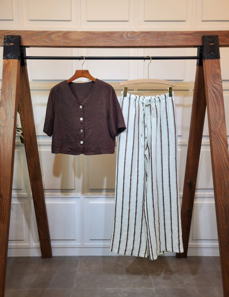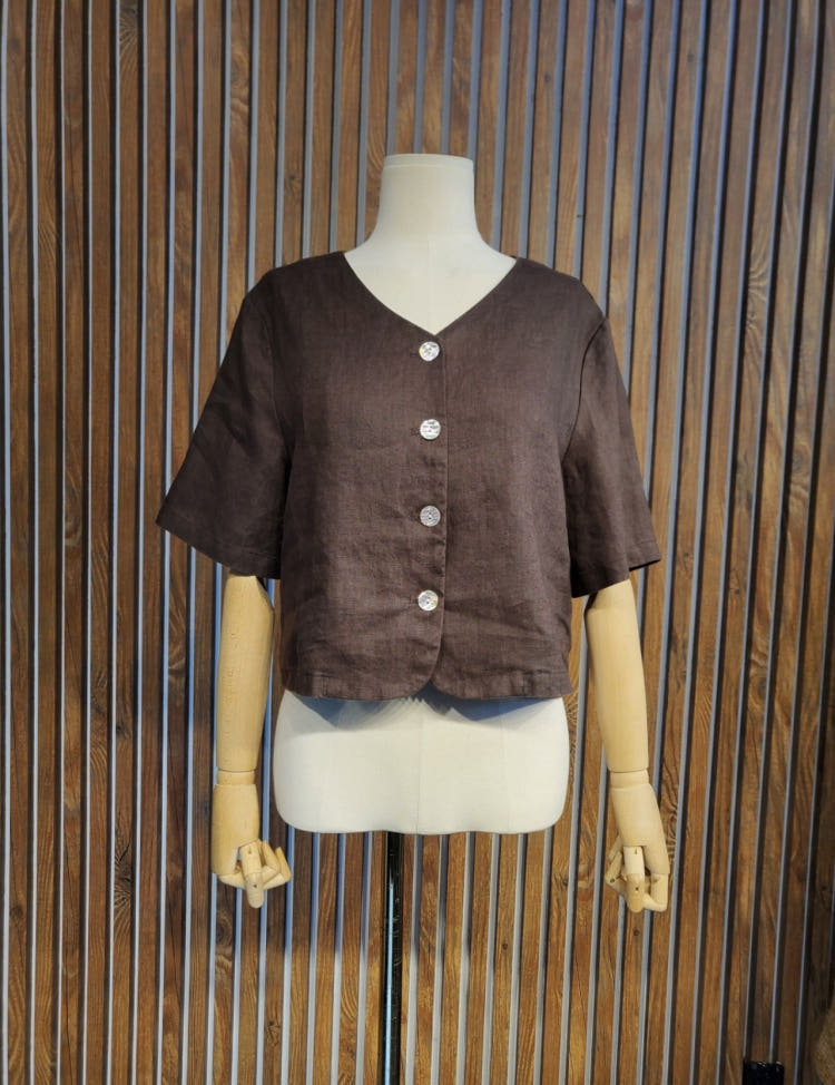 크롭 린넨 반팔 쟈켓