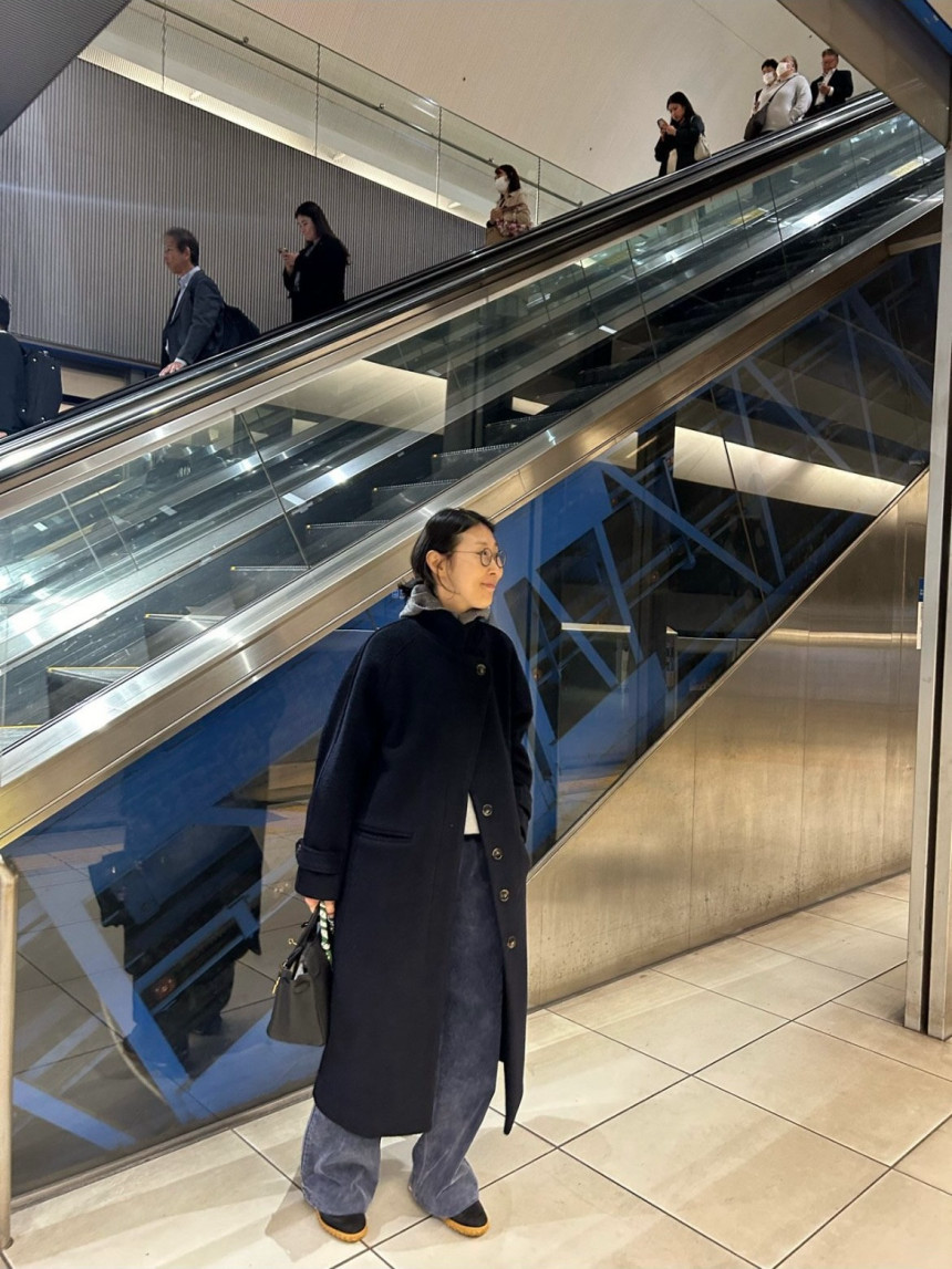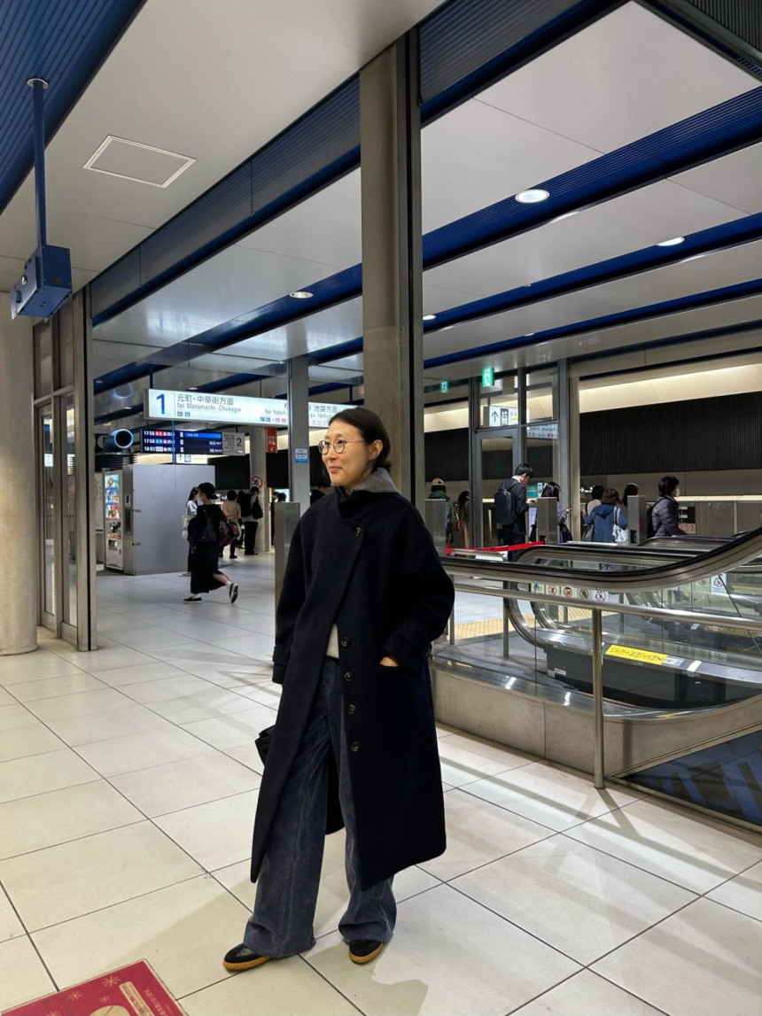 - 일자로 쭉 떨어지는 롱코트입니다.