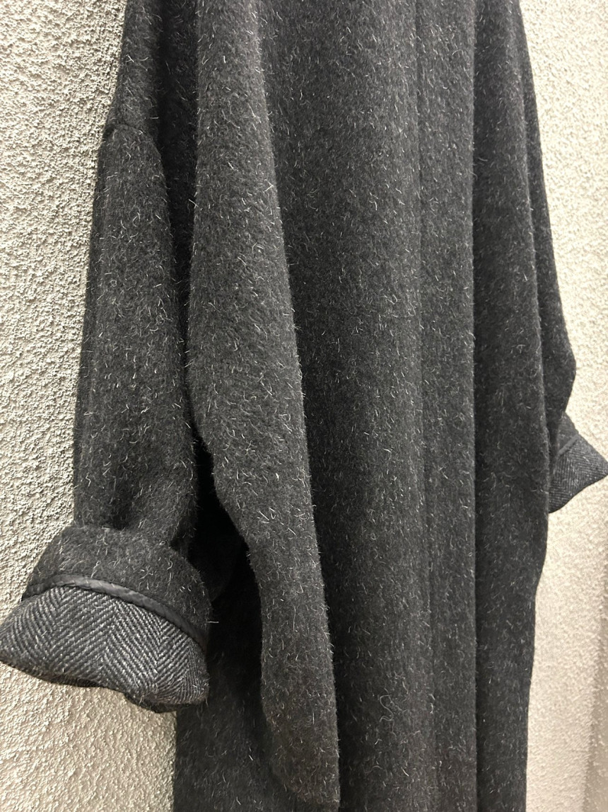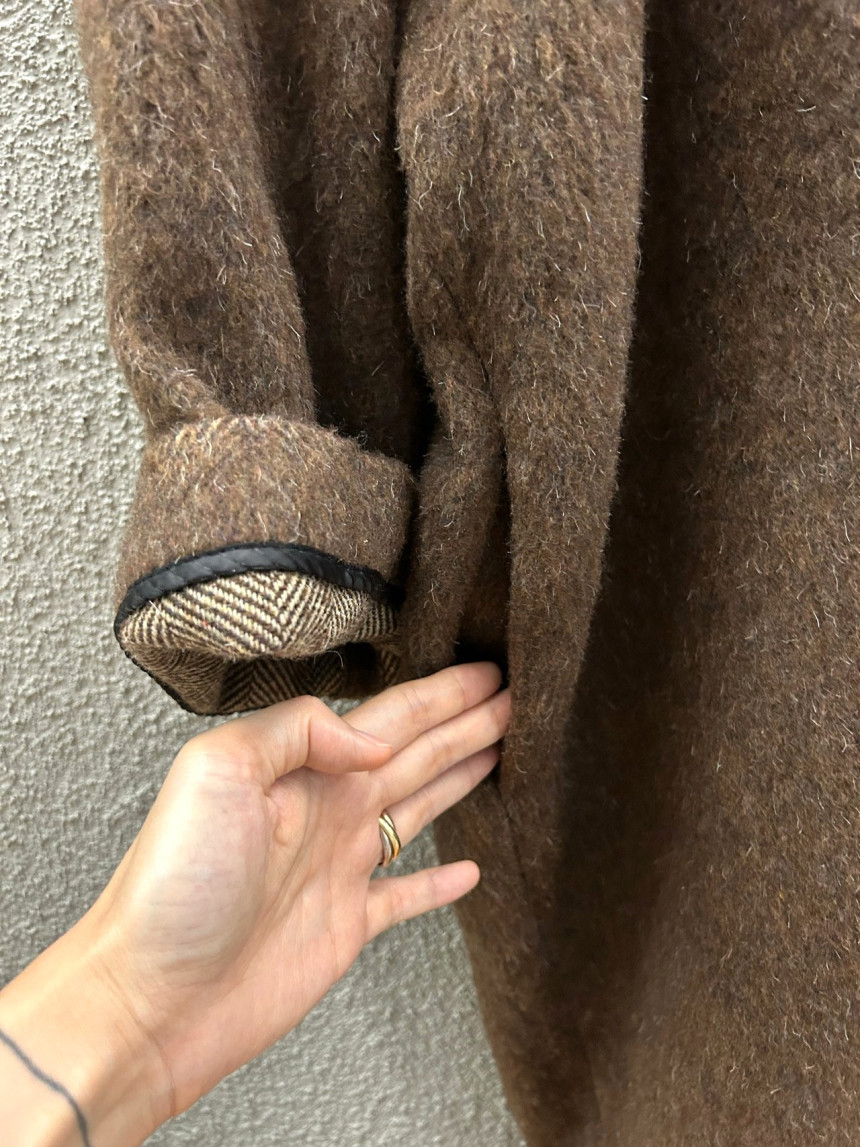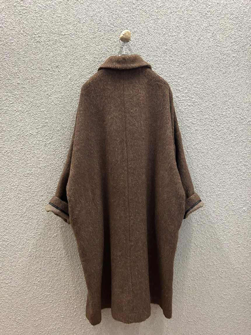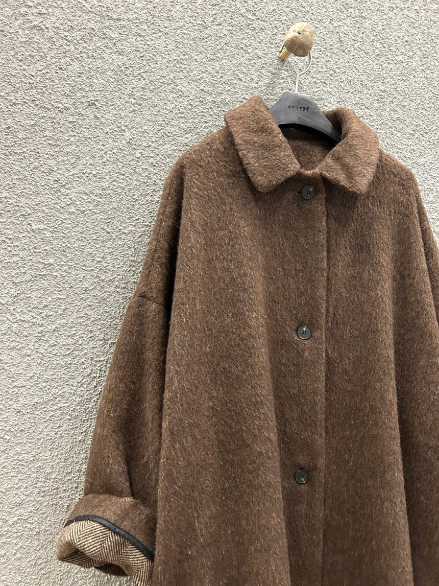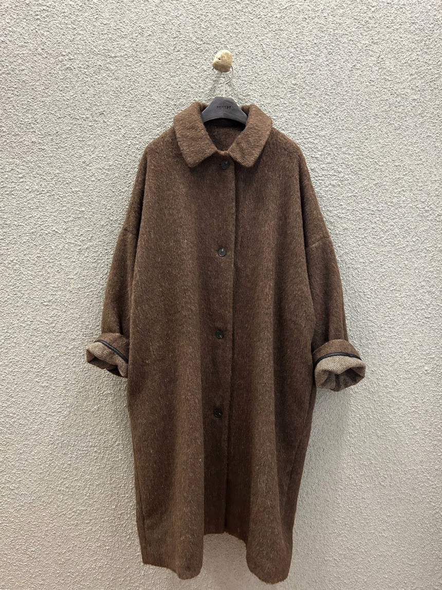 - 밝은 칼라의 헤어가 있는 캐쥬얼한 느낌의 롱코트를 찾으시는 분,아방가르드한 스타일의 코트를