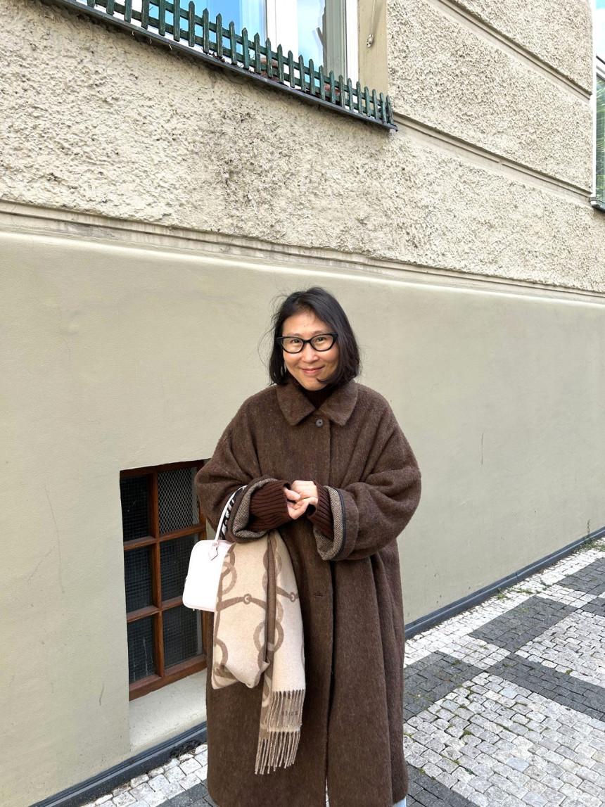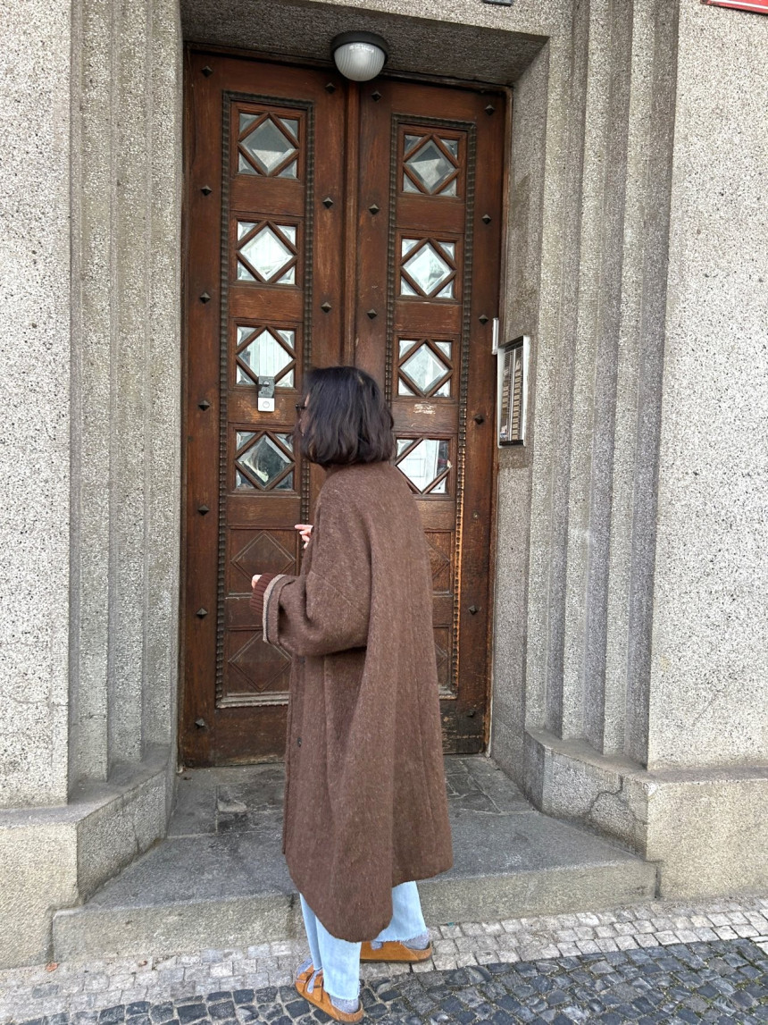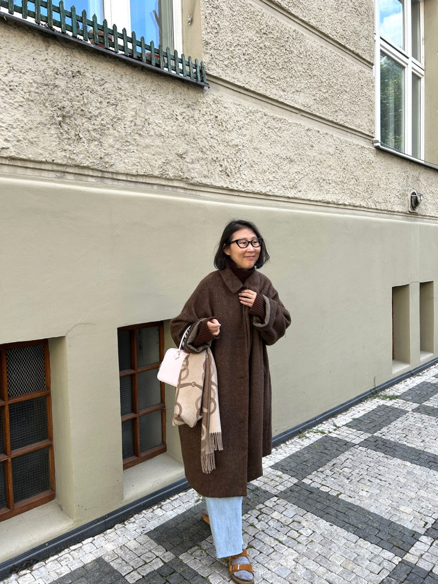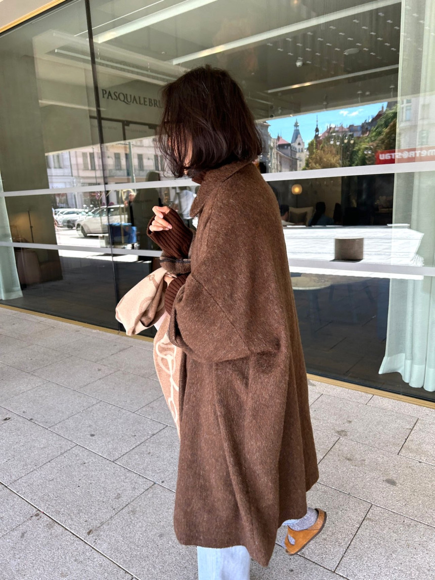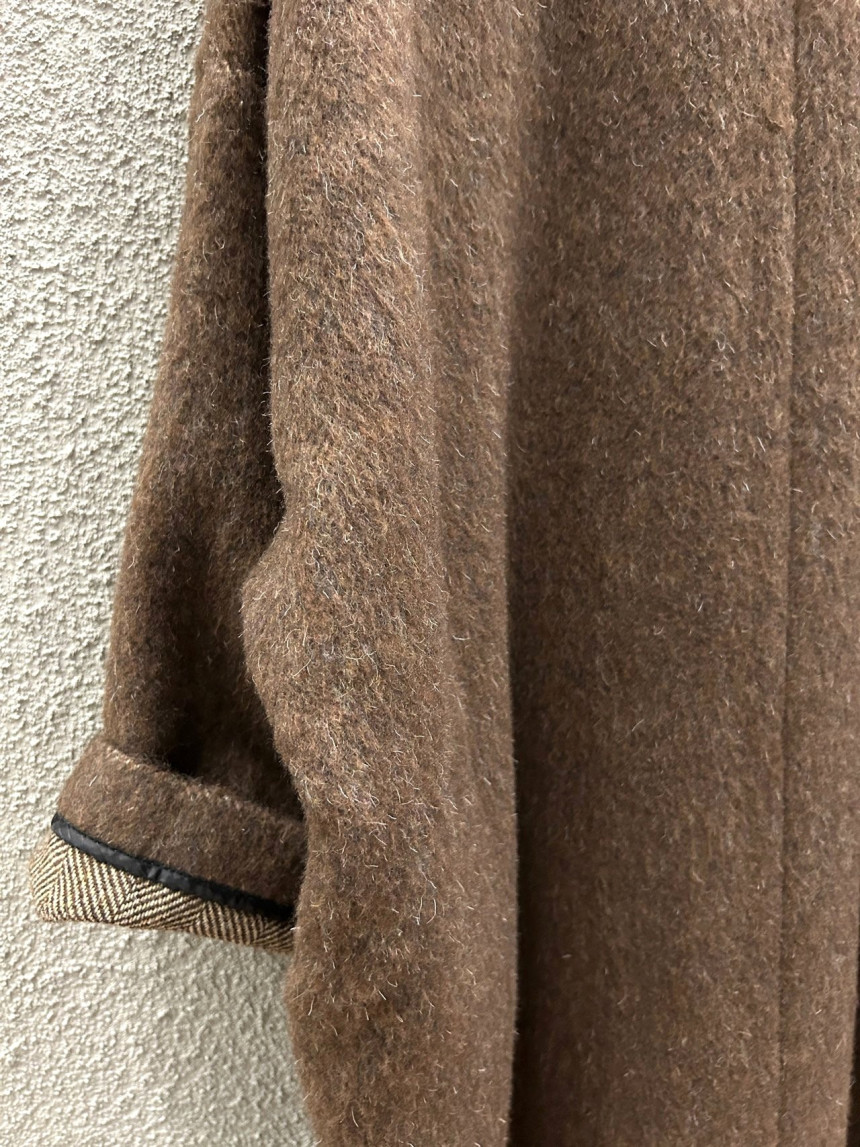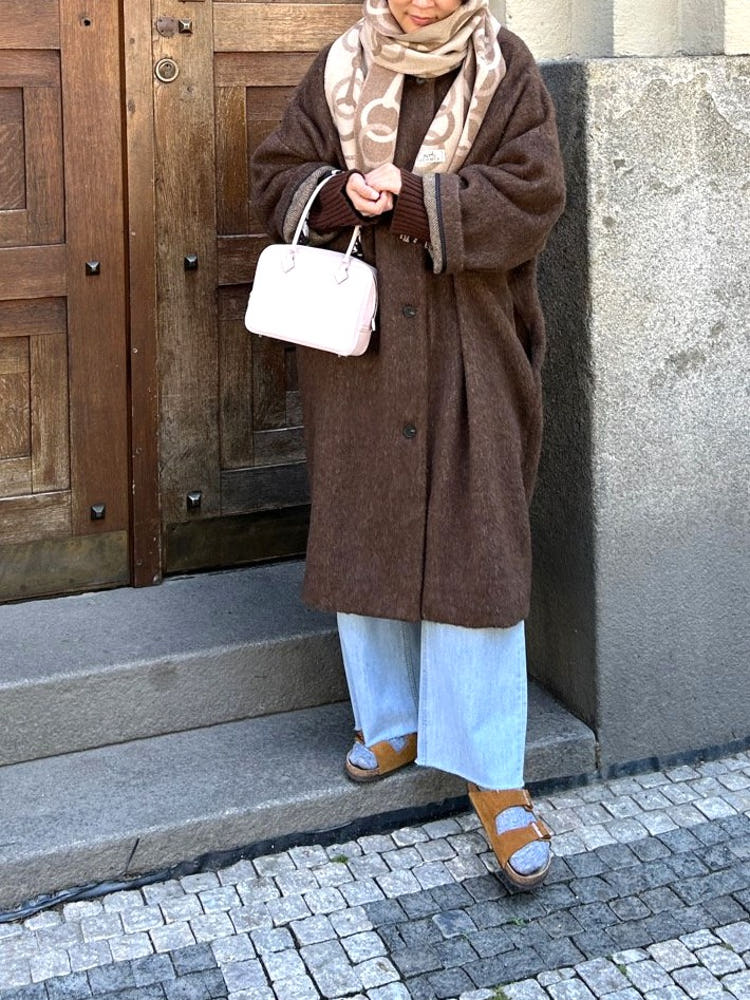 - 밝은 칼라의 헤어가 있는 캐쥬얼한 느낌의 롱코트를 찾으시는 분,아방가르드한 스타일의 코트를
