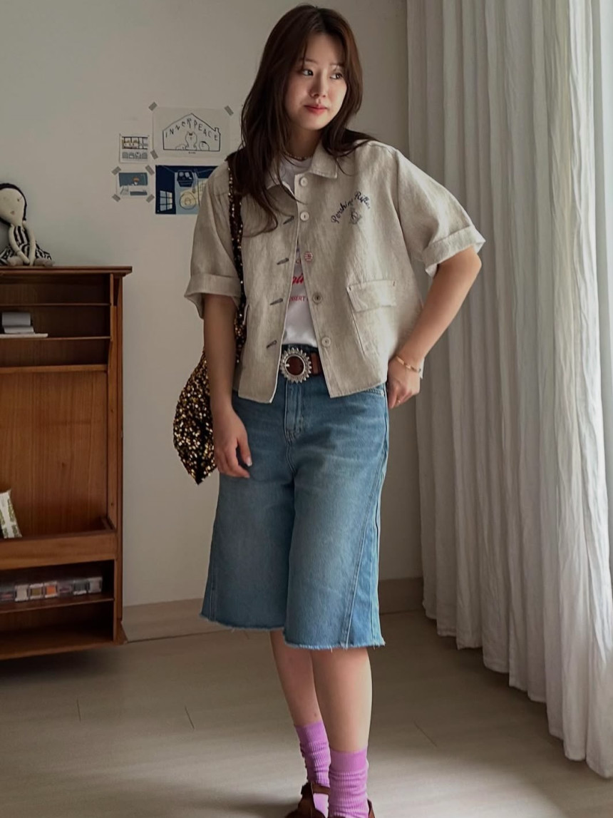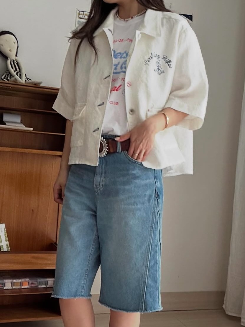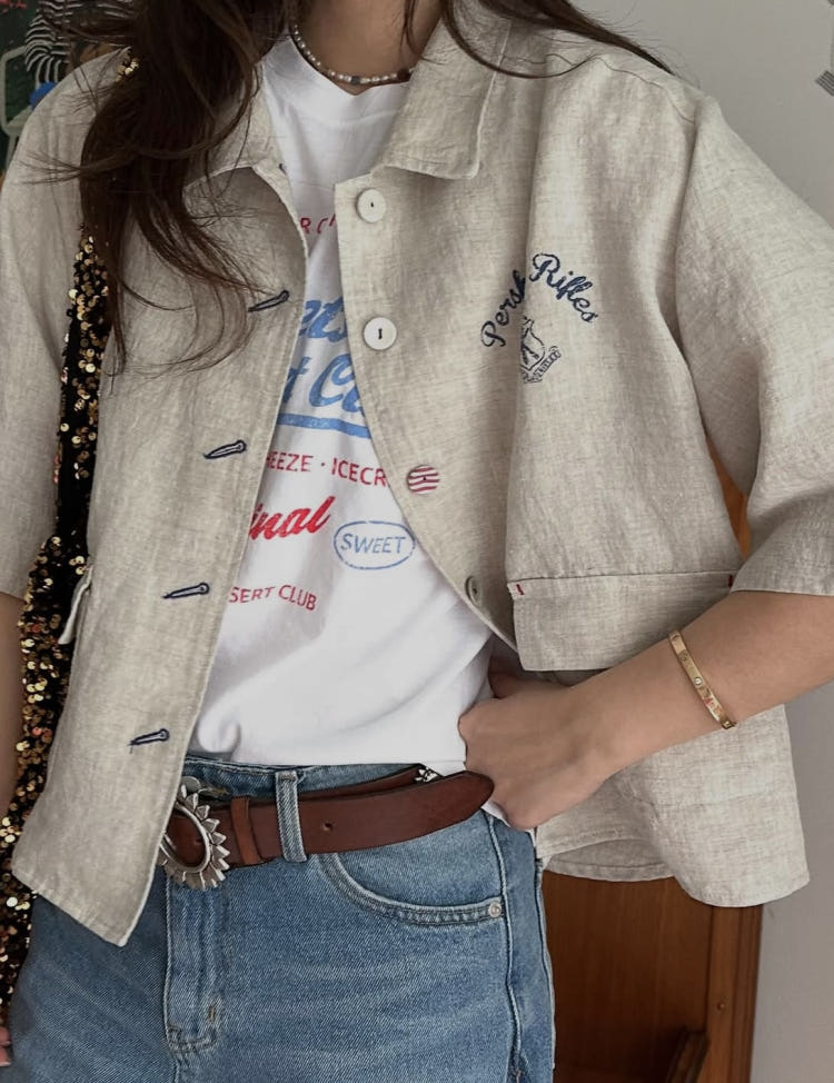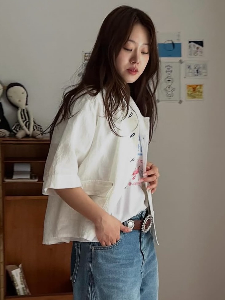 - 단추등 디테일이 유니크하며 데님등과 잘 어울리는 여름 상의 입니다.