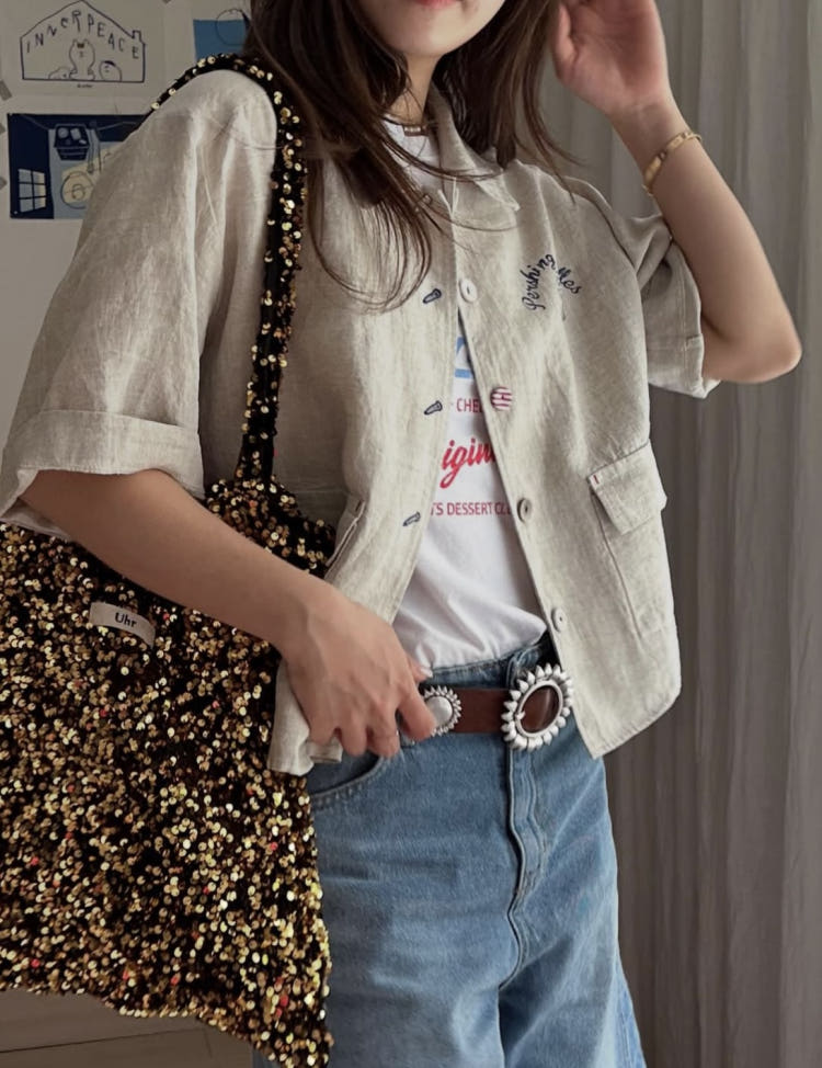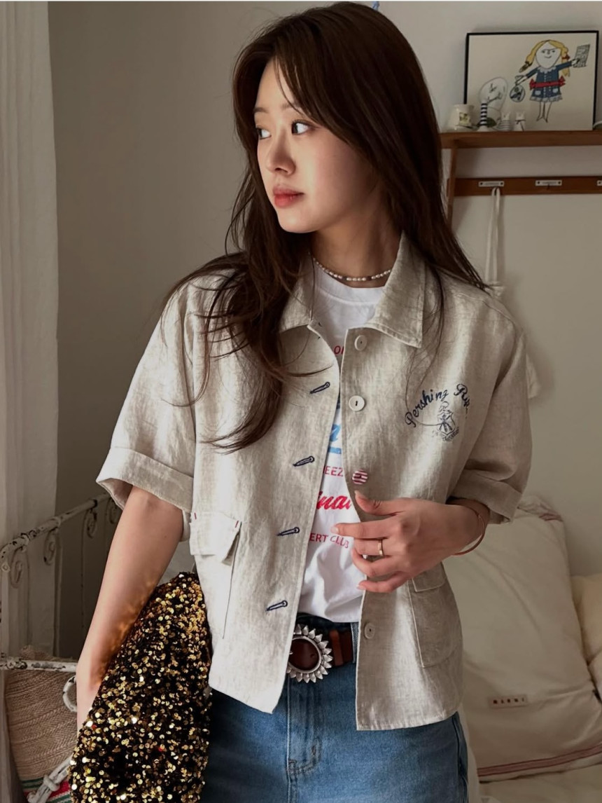 - 린넨 100의 시원한 7부 소매 쟈켓입니다.