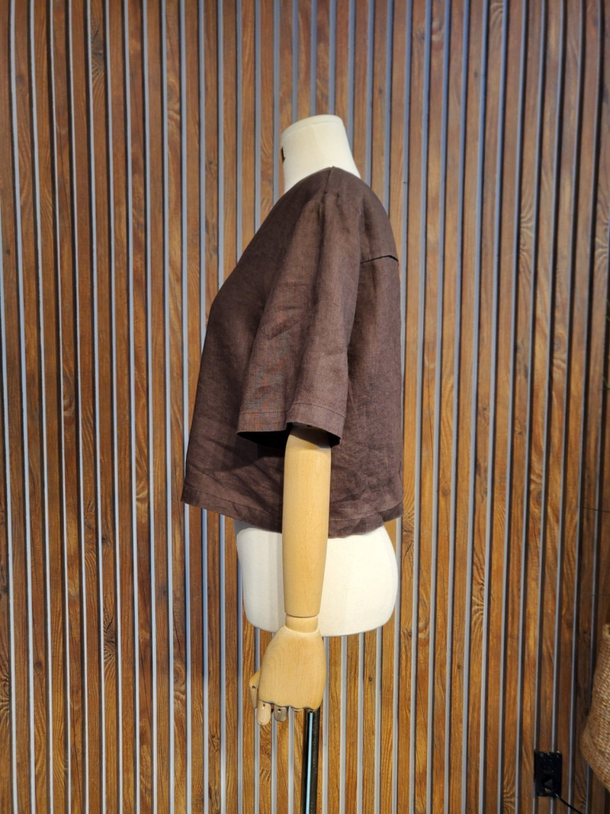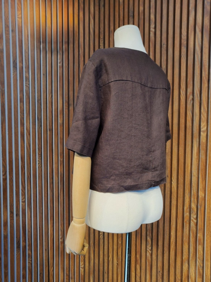 크롭 린넨 반팔 쟈켓