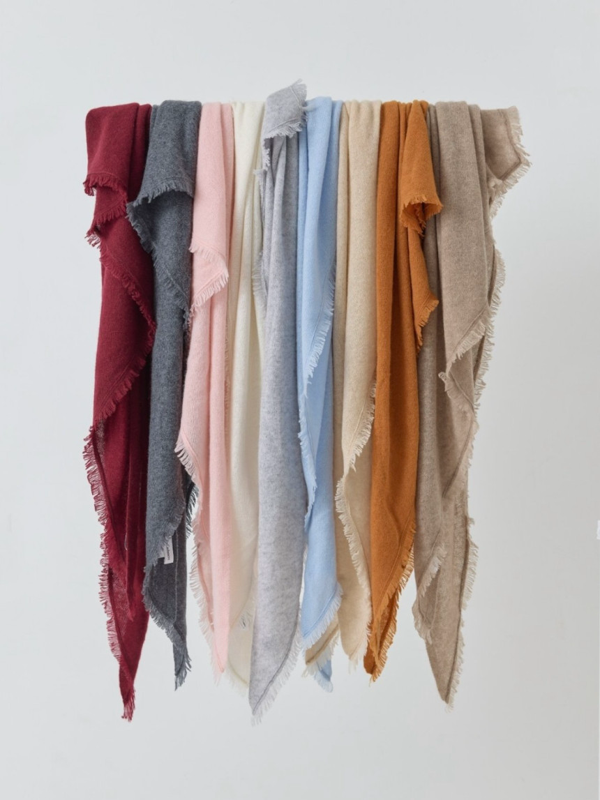 - 부드럽고 가벼운 캐시미어 100% 의 삼각형 형태의 숄입니다.