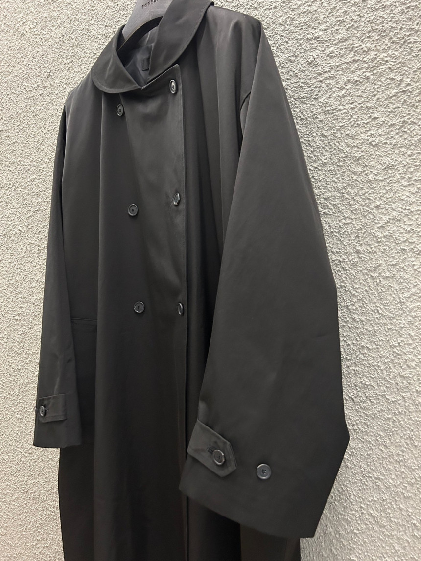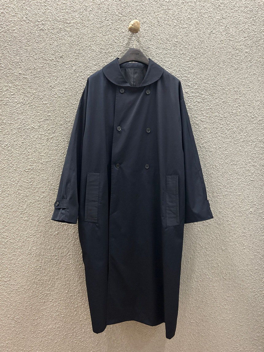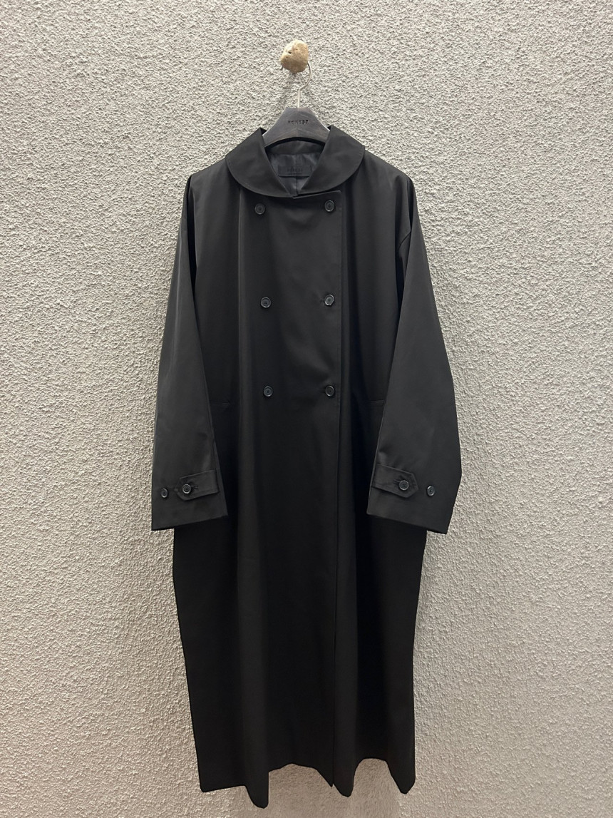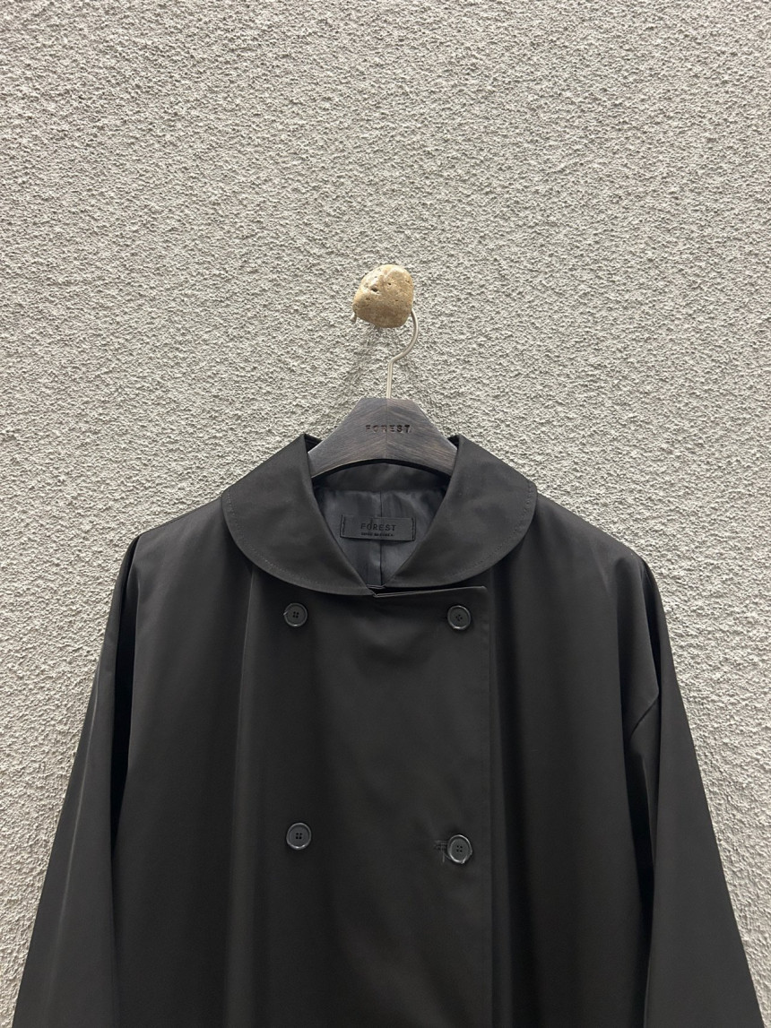 - 귀여운 라운드카라의 더블 롱 트렌치 코트입니다.