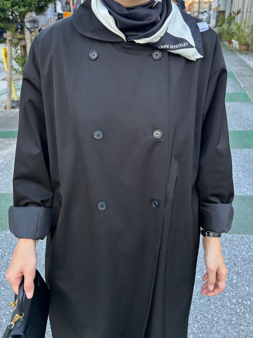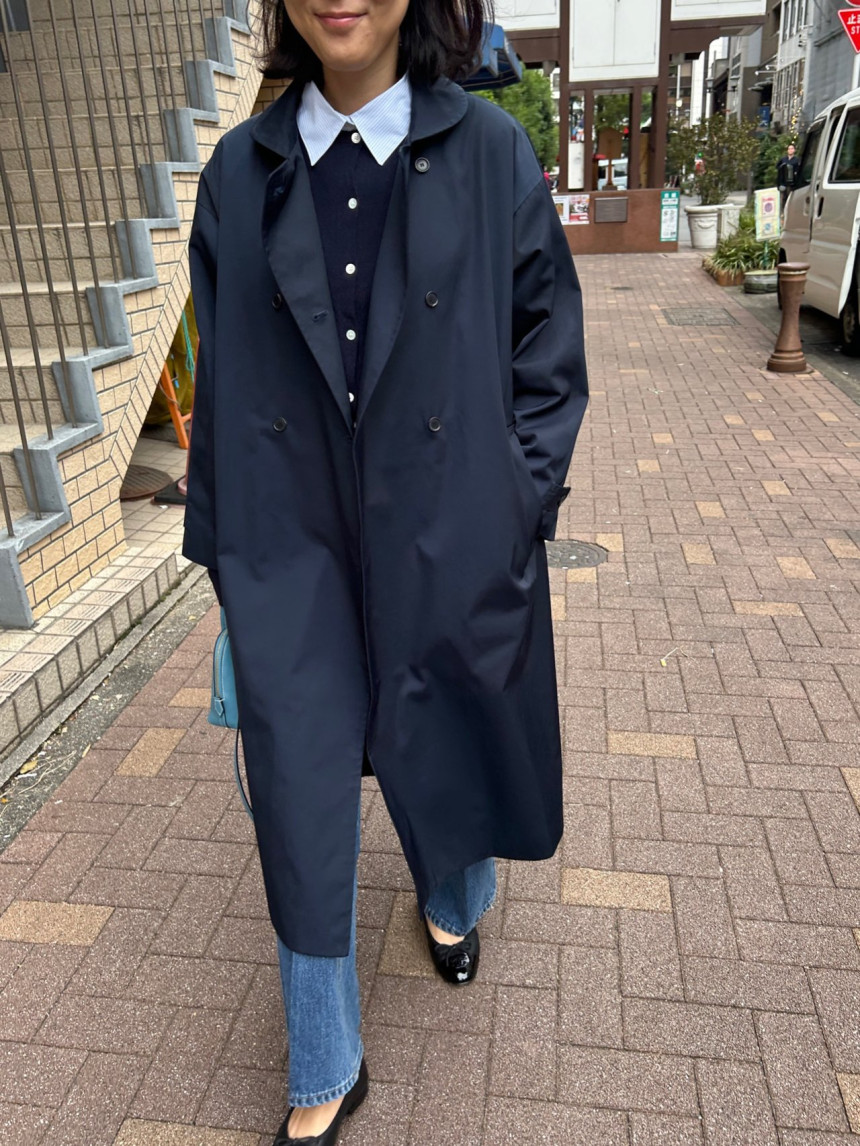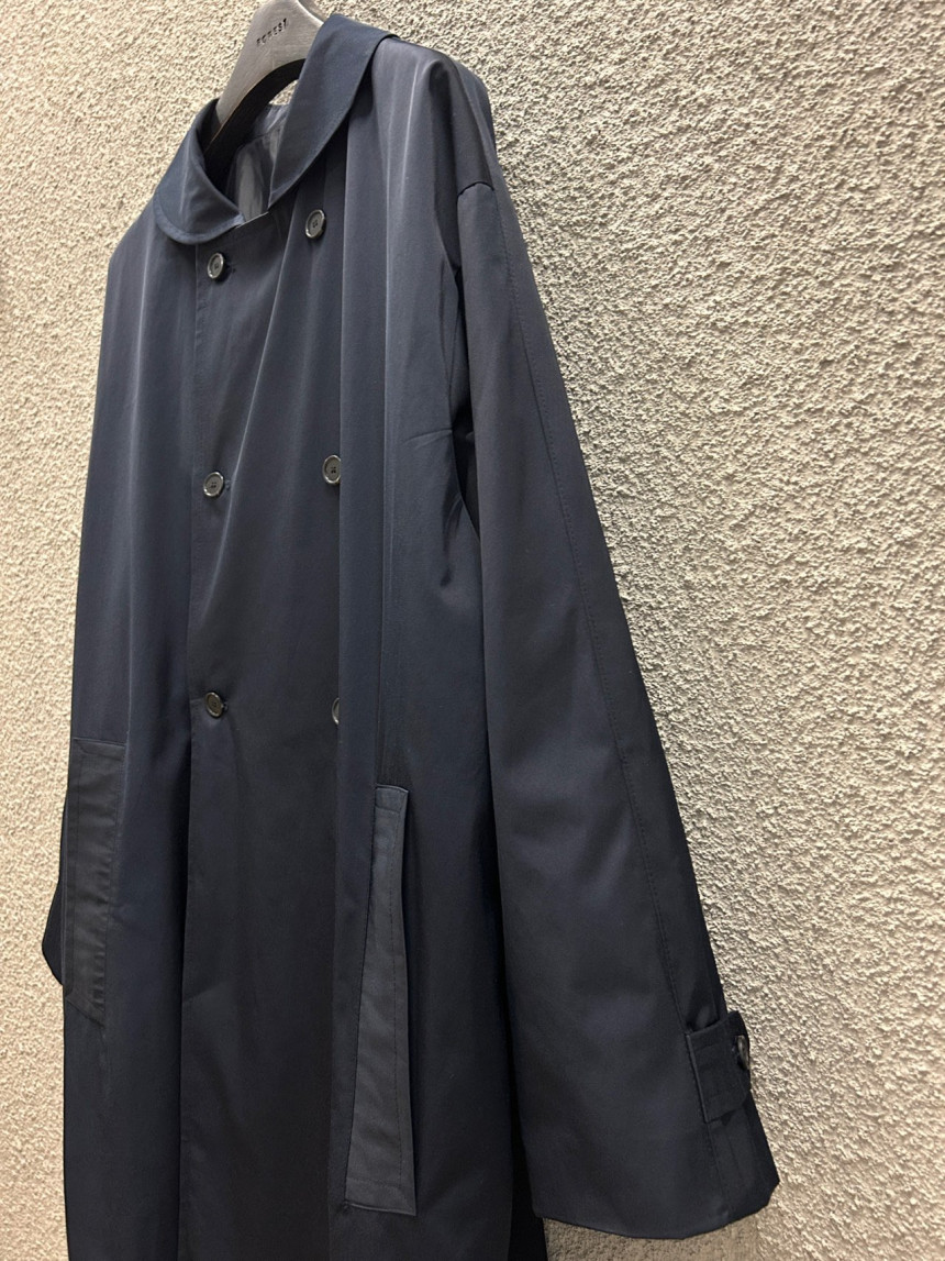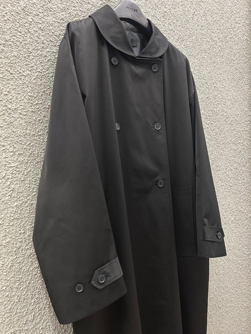 - 귀여운 라운드카라의 더블 롱 트렌치 코트입니다.